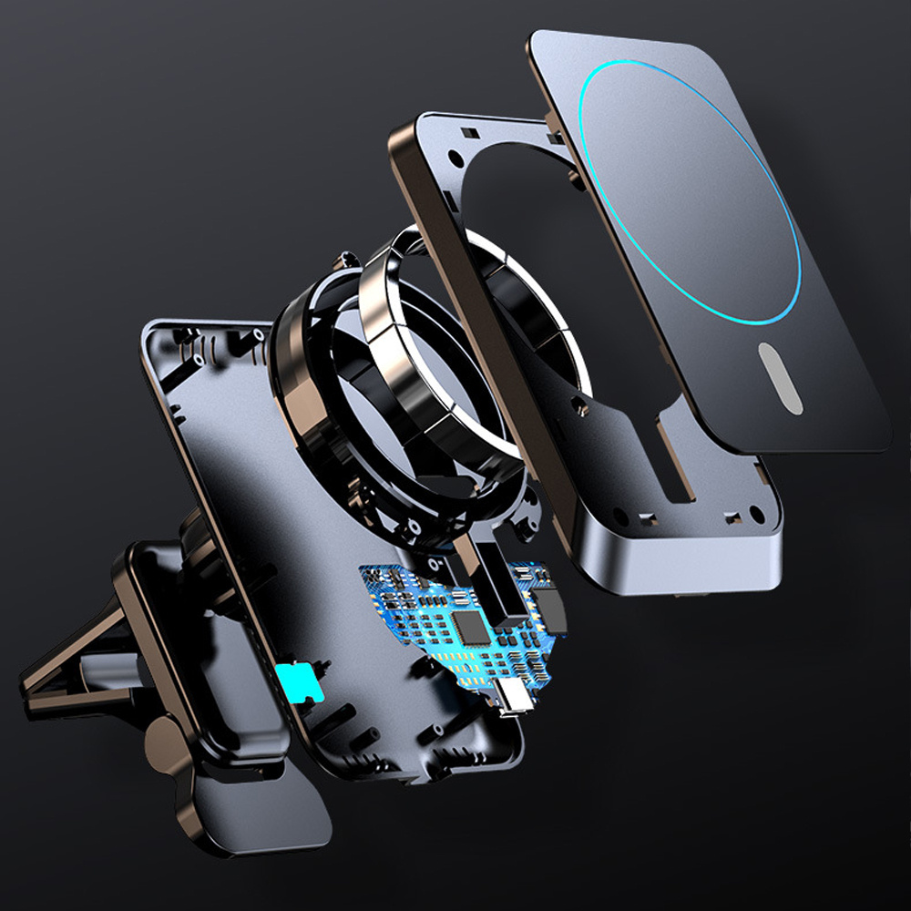 Vestavěné magnety v nabíječce dokonale drží smartphone na správném místě a zajišťují rychlé a bezpečné nabíjení.