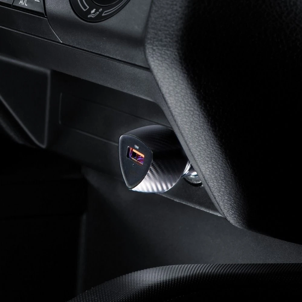 Hledáte nabíječku, která vám rychle a bezpečně nabije telefon během jízdy? Forcell Carbon QC 3.0 18W je kombinací elegance, efektivity a všestrannosti. Černý karbonový design se perfektně hodí do interiéru každého vozu a díky kompaktním rozměrům nezabere mnoho místa.