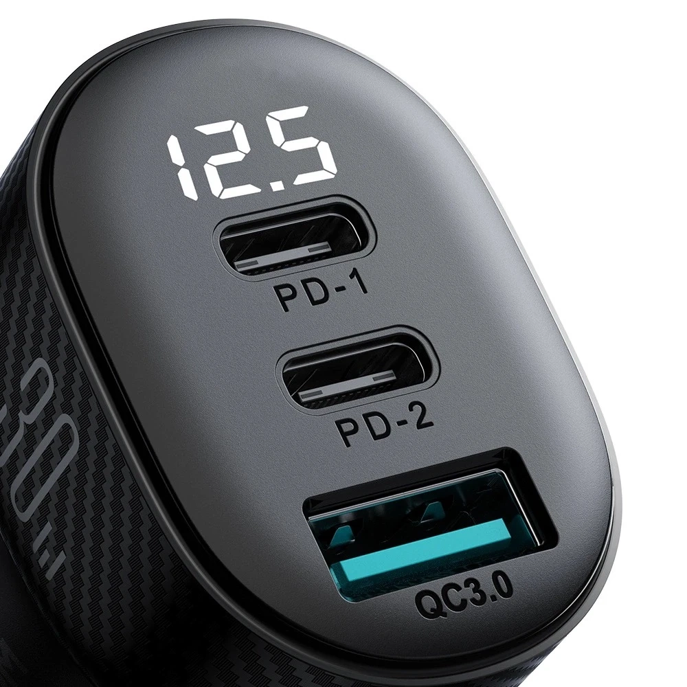 Zapomeňte na omezení a překvapení na cestách. Joyroom JR-CCD04 je kompaktní autonabíječka s celkovým výkonem 30 W, vybavená dvěma porty USB-C a jedním USB-A a přehledným digitálním displejem, který neustále sleduje napětí baterie (12-24 V).