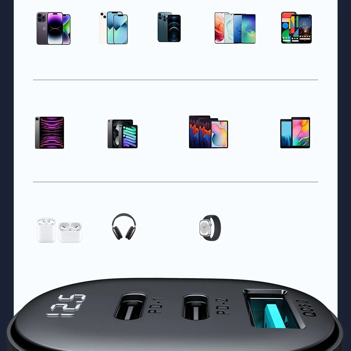 Podpora technologií Power Delivery 3.0, Quick Charge 3.0, PPS, Samsung AFC a Huawei FCP znamená, že se jakékoli zařízení (chytrý telefon, tablet, GPS) nabije rychle a bezpečně.