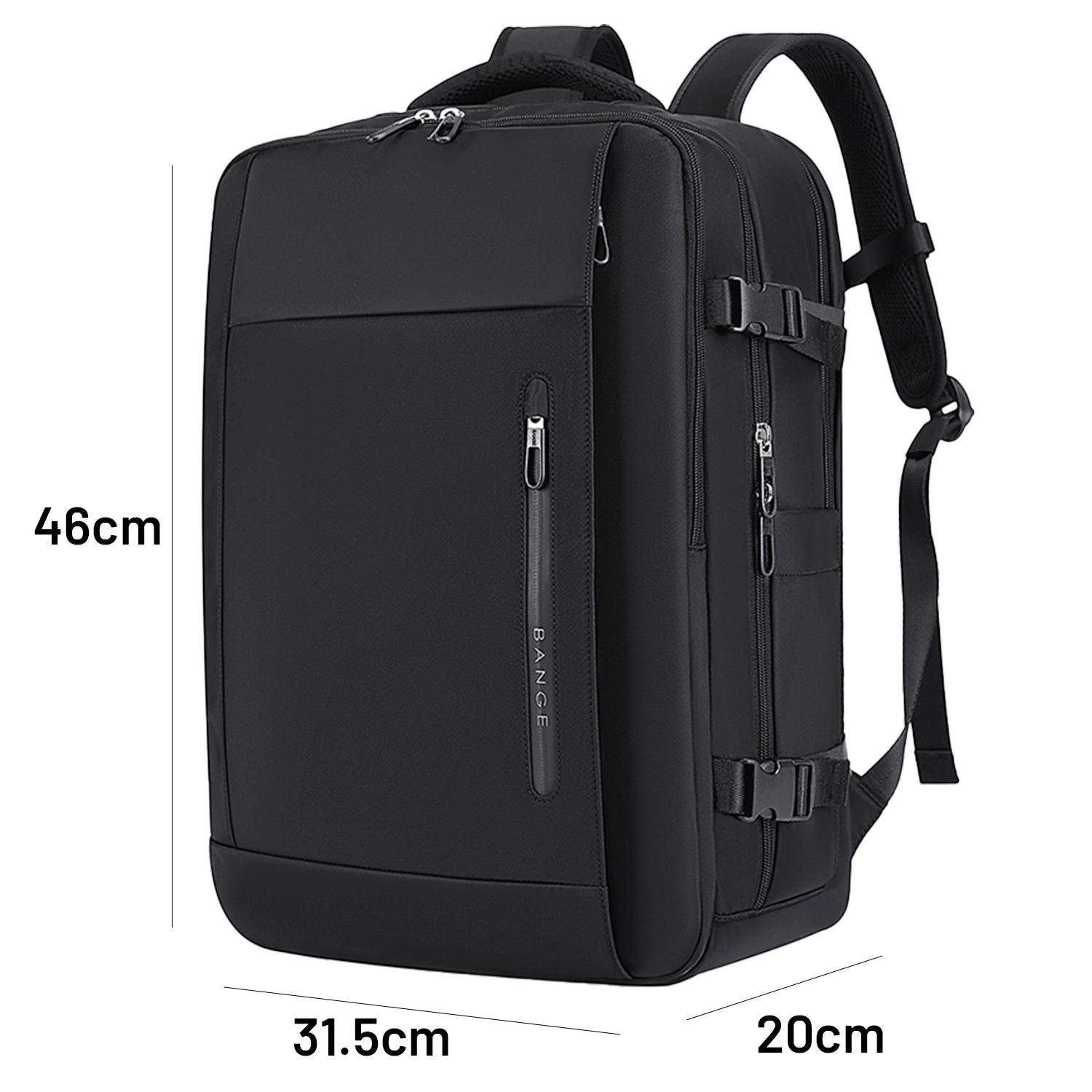 Bange voděodolný batoh na 15,6" notebook, městský cestovatel, 45x30x16 cm, do práce, do letadla, pánské, dámské, s USB portem Černá