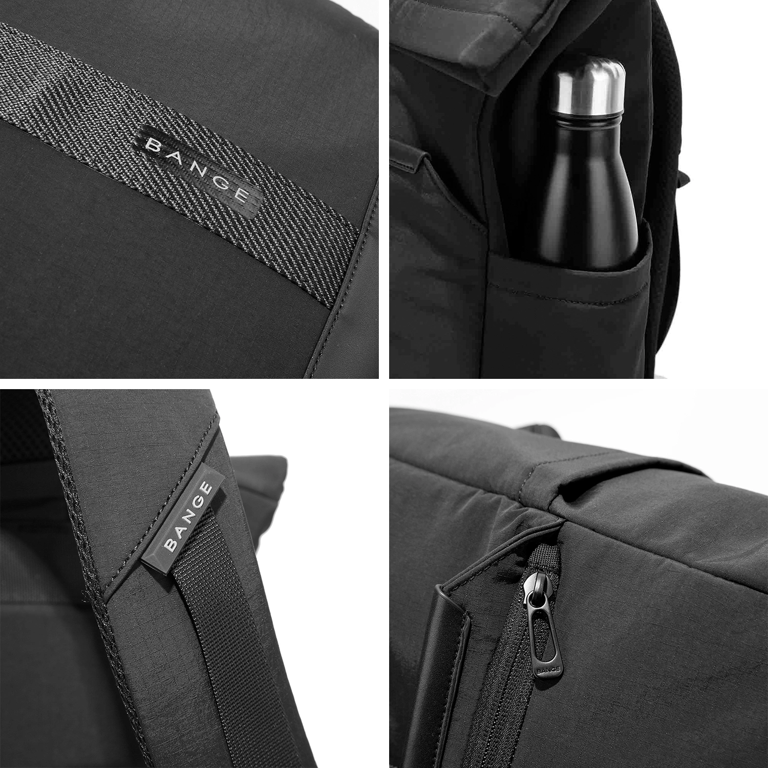 Bange voděodolný batoh na 15,6" notebook, městský cestovatel, 45x30x16 cm, do práce, do letadla, pánské, dámské, s USB portem Černá
