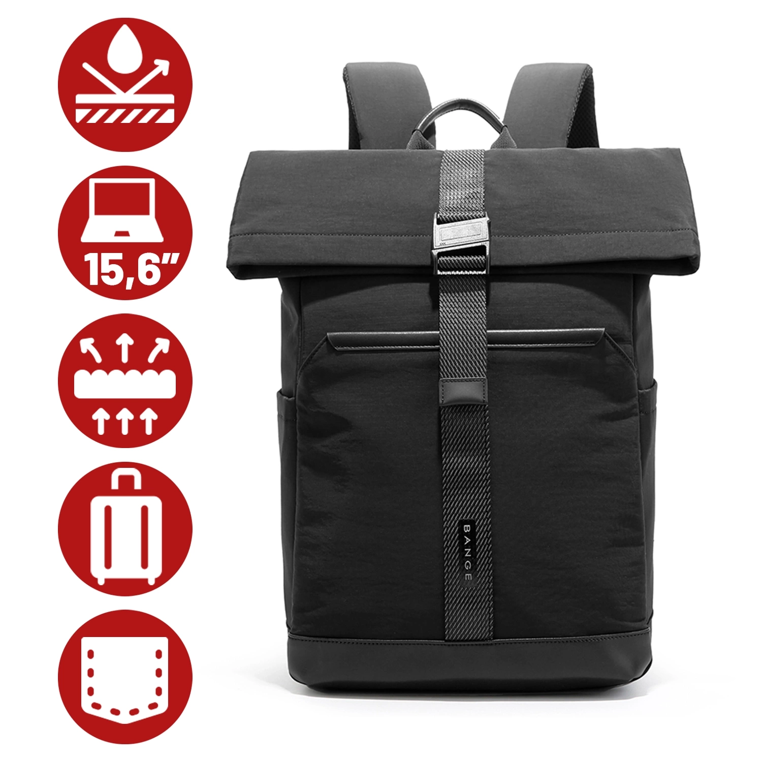 • Vodotěsný batoh Bange 15,6" s objemem až 35 litrů. Vyroben z odolných materiálů, má četné kapsy, odvětrávaná záda a nastavitelné popruhy. Perfektní na notebook, do práce i na cesty.