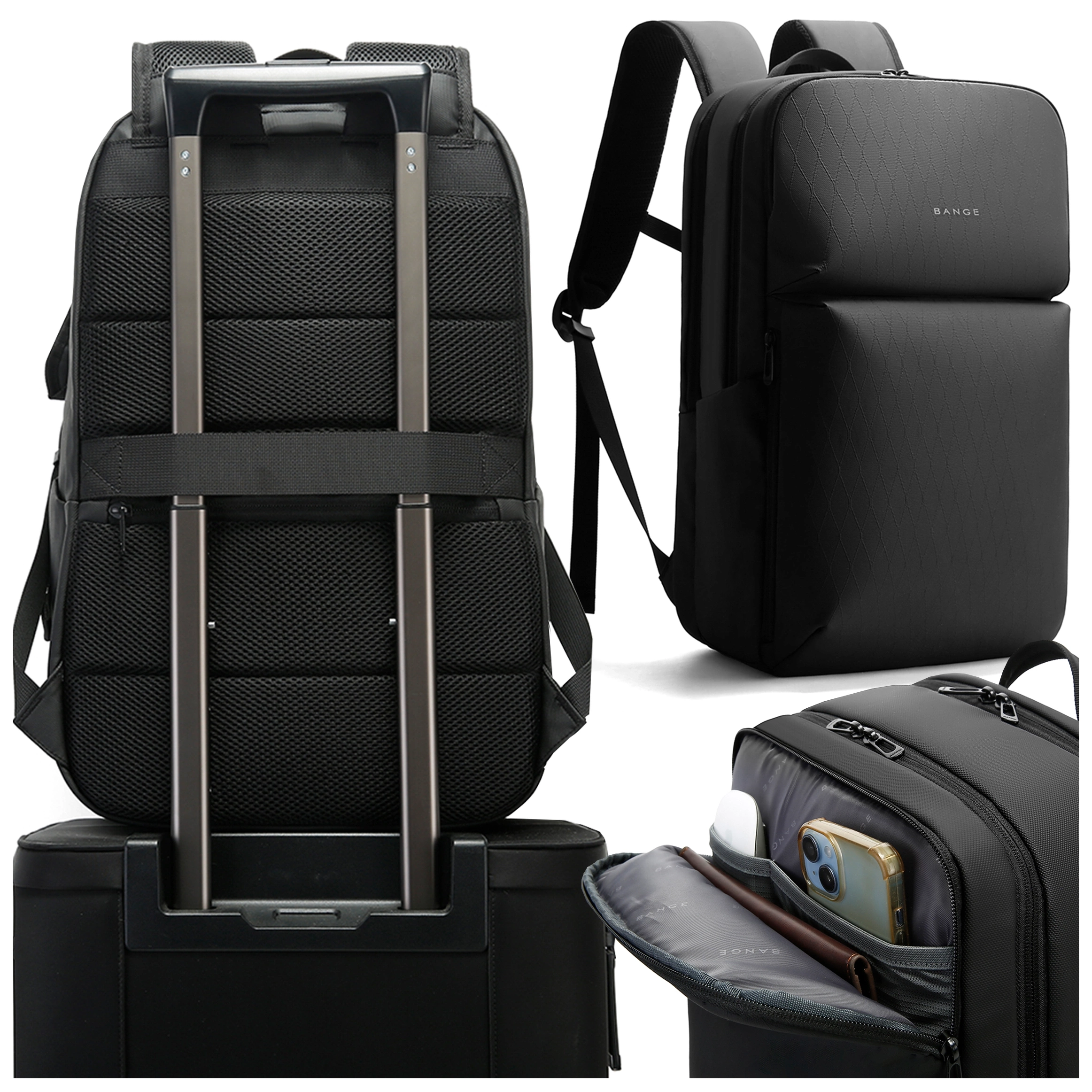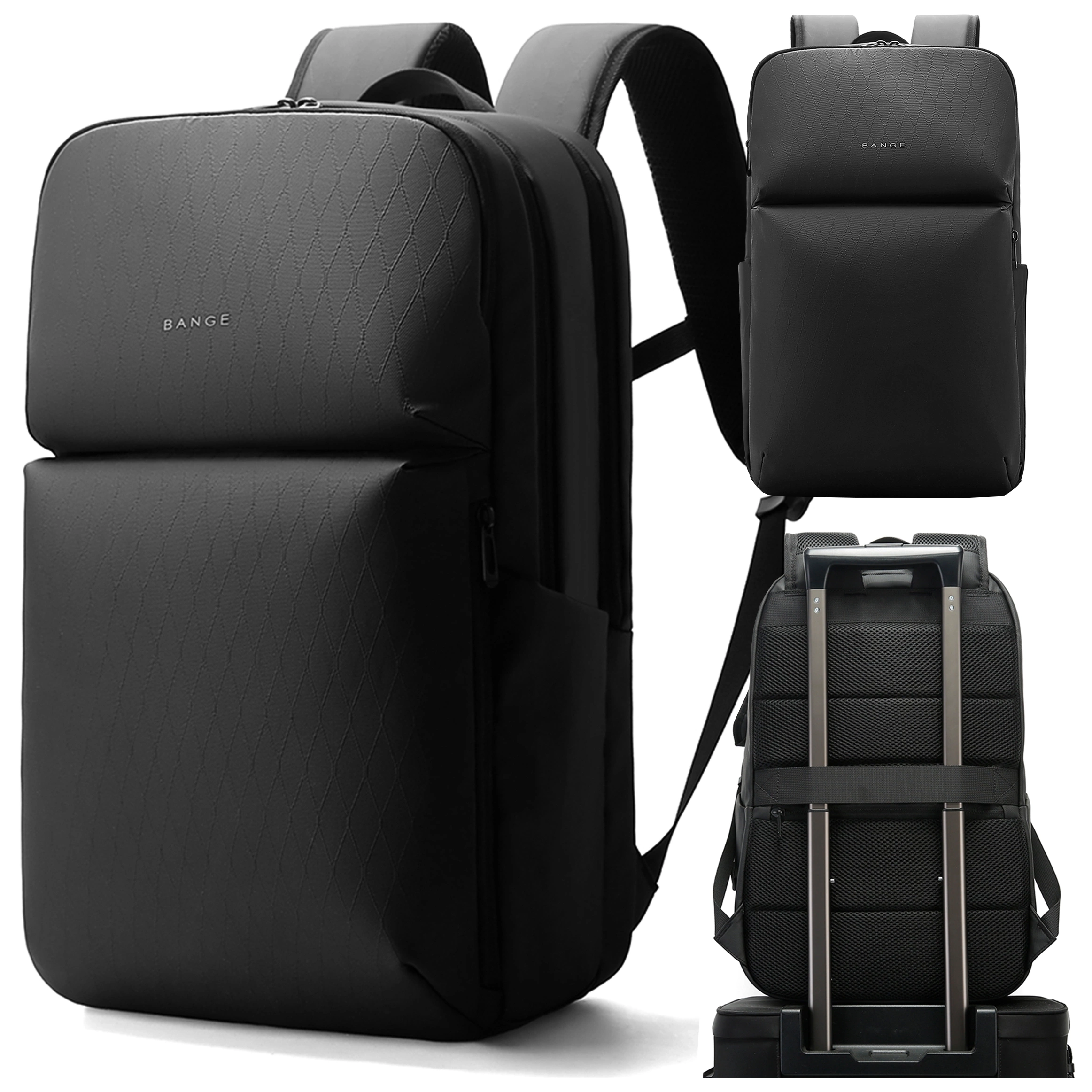 Bange voděodolný batoh na 15,6" notebook, městský cestovatel, 45x30x16 cm, do práce, do letadla, pánské, dámské, s USB portem Černá
