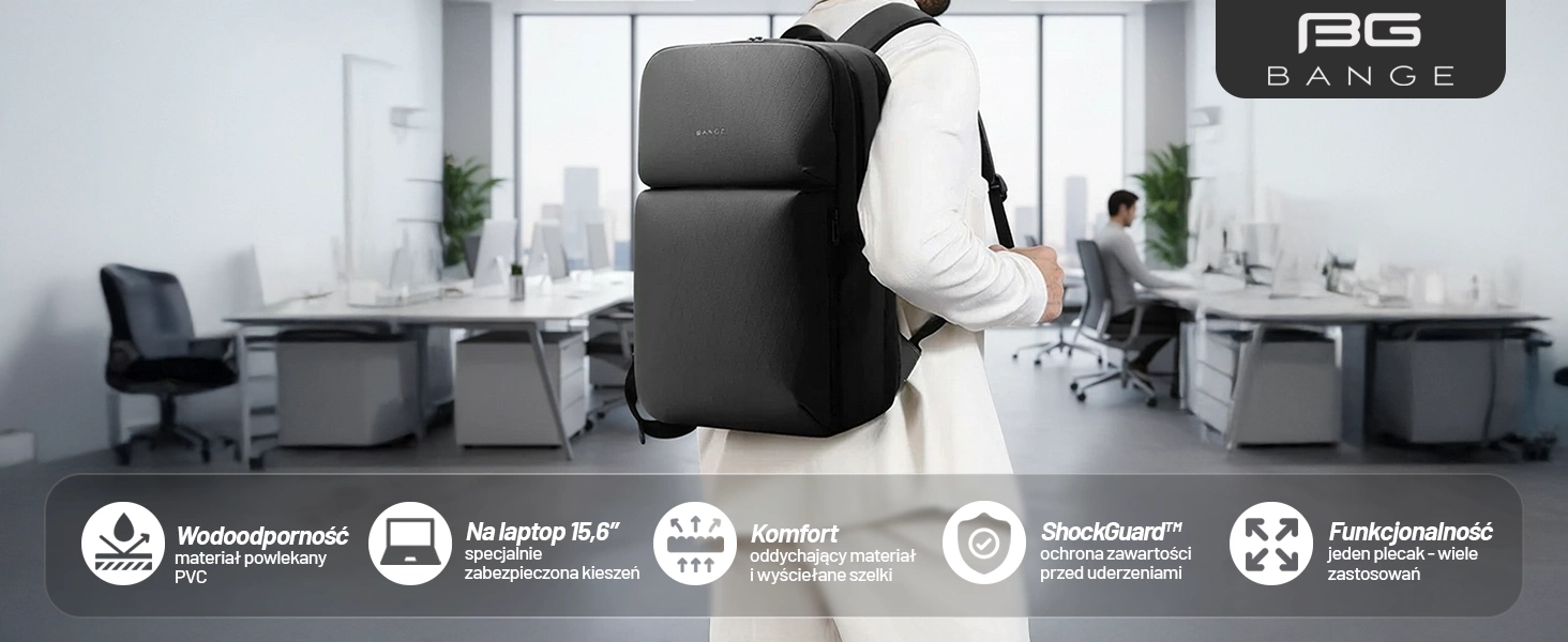 • Vodotěsný batoh Bange 15,6" s objemem až 35 litrů. Vyroben z odolných materiálů, má četné kapsy, odvětrávaná záda a nastavitelné popruhy. Perfektní na notebook, do práce i na cesty.