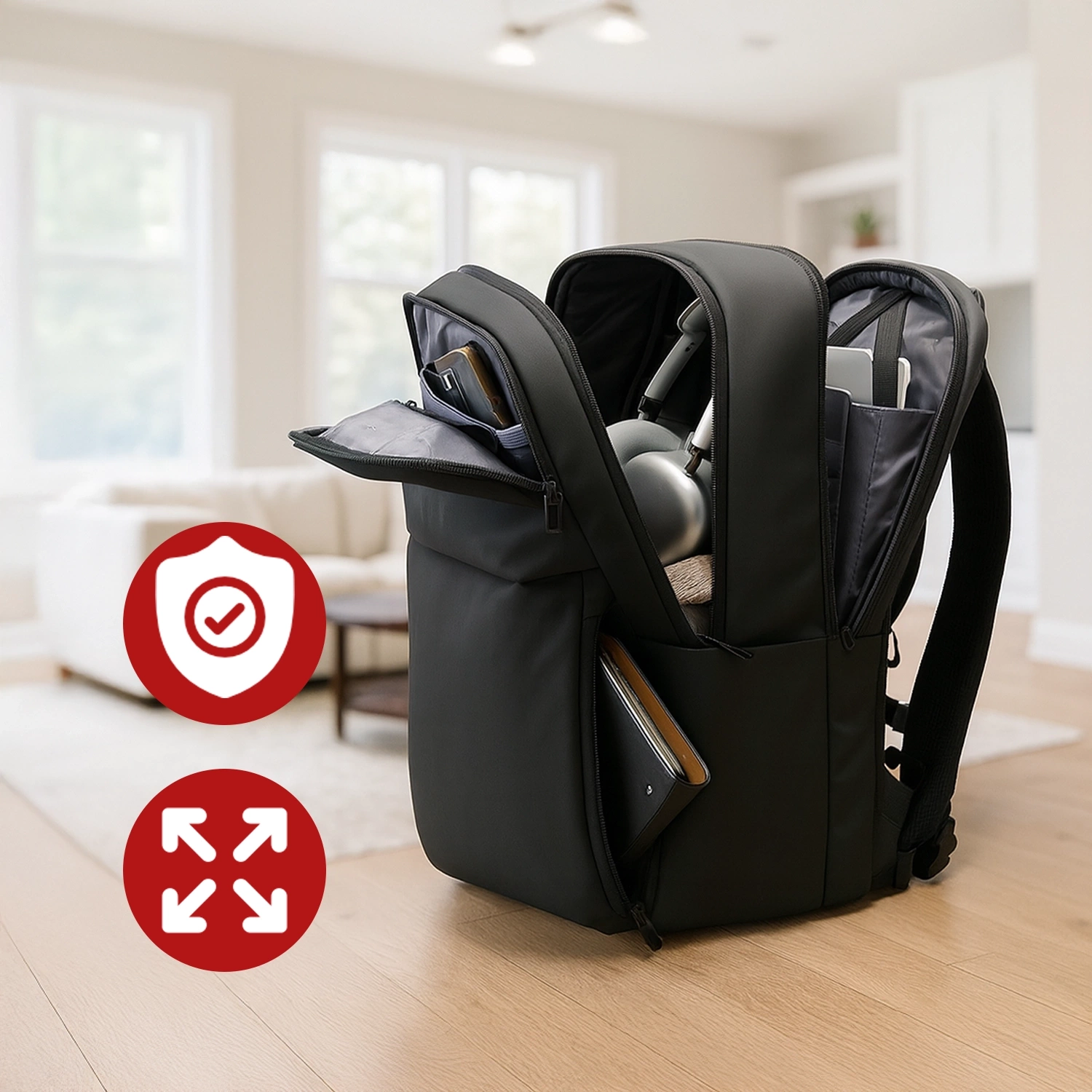 ✅ Batoh je vybaven šestistrannou ochranou tlumící nárazy , která účinně chrání notebook a další cenné předměty před poškozením. Měkká přihrádka batohu dokonale ochrání naše vybavení , i když batoh spadne nebo do něčeho narazí.