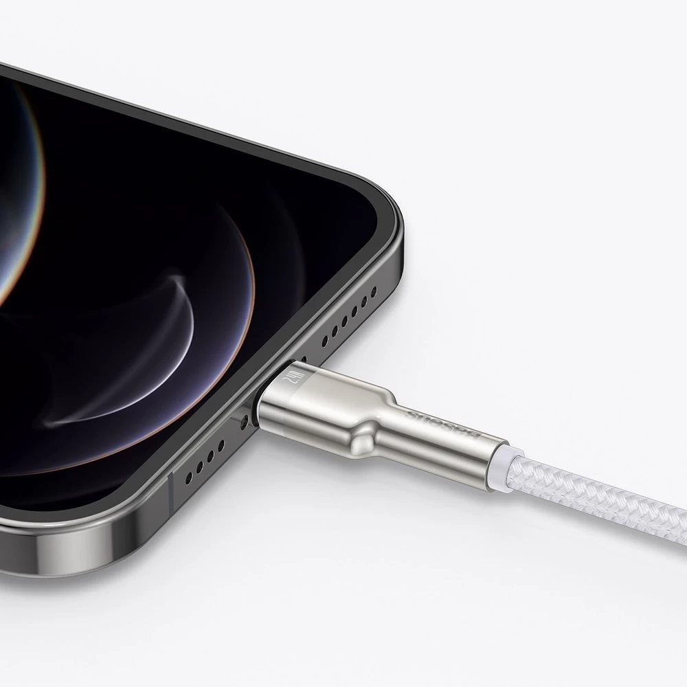 Tento kabel okamžitě nabije baterii vašeho iPhonu – je kompatibilní se zařízeními Apple s konektorem Lightning. Zaručuje stabilní a spolehlivý provoz po dlouhou dobu a také vysokou účinnost. Vyrobeno z kvalitních materiálů, je chráněno proti poškození - nylonový oplet nepraská a nedeformuje se a baterie se nepřehřívá a nepoškozuje. Mohou za to detaily, jako jsou gumové ochrany, které chrání vchody proti poškrábání a jinému mechanickému poškození