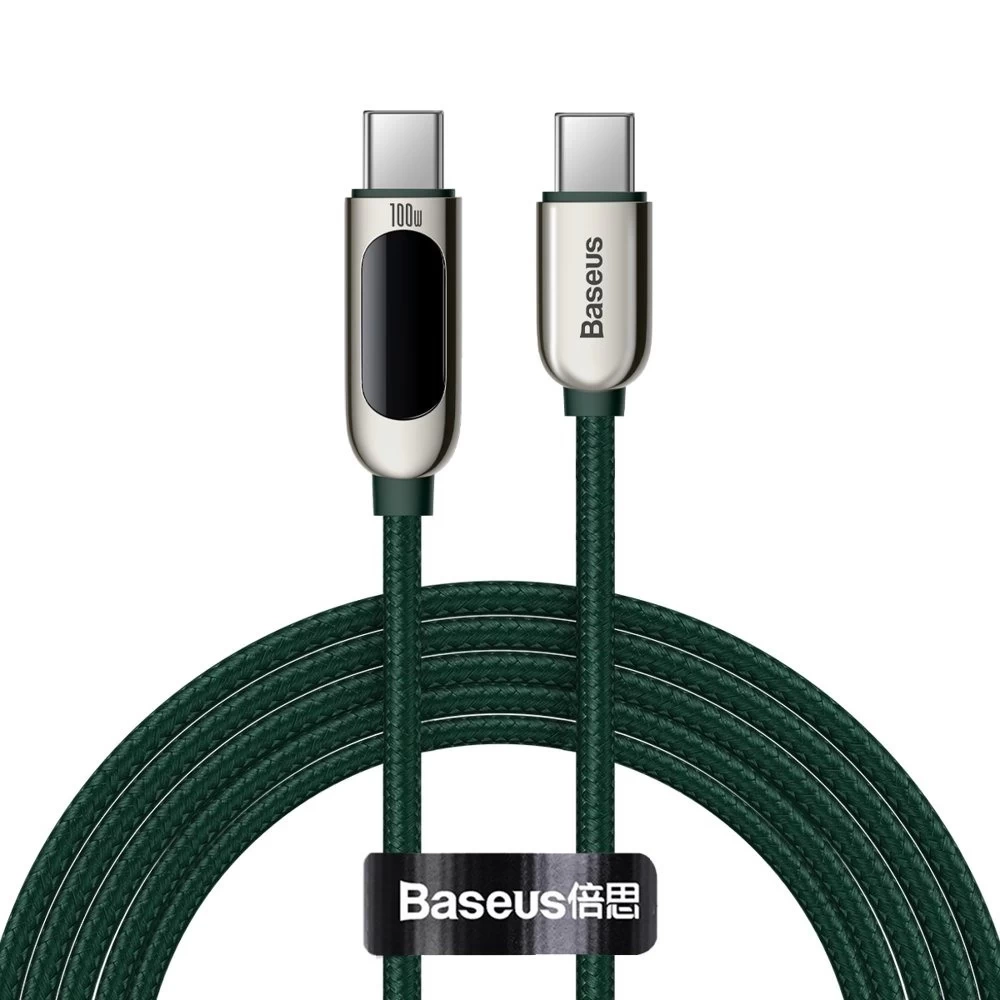 Baseus USB Type C kabel - USB Type C 100W (20V / 5A) Power Delivery s měřičem výkonu obrazovky 2m zelený (CATSK-C06)