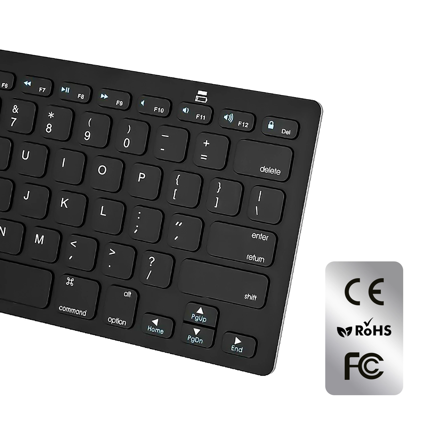 Klávesnice má certifikaci CE, ROHS a FCC