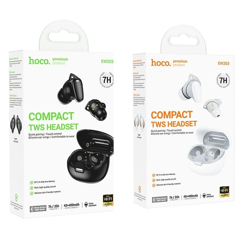 Hoco EW203 TWS jsou sluchátka do uší navržená pro pohodlí a mobilitu. Díky kompaktnímu designu a nízké hmotnosti si je můžete vzít kamkoli – do práce, na výlet nebo na cvičení.