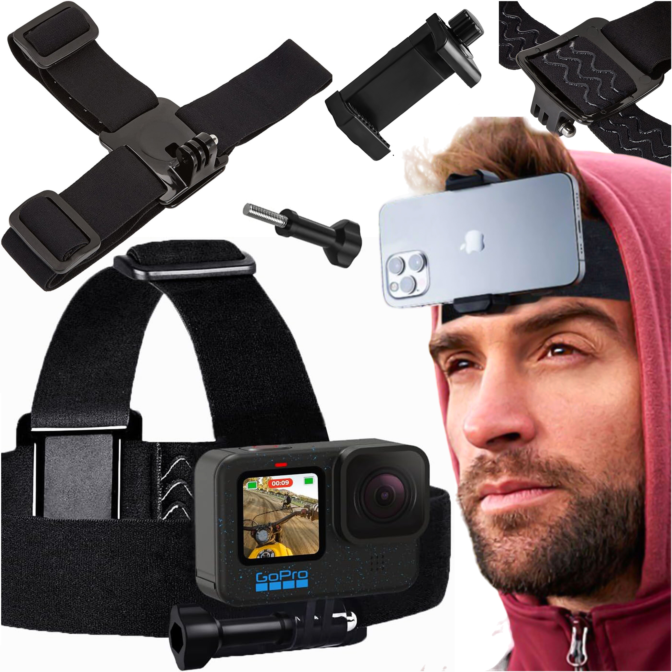 Držák 2 v 1 pro mobilní telefon a sportovní kameru s čelenkou vyrobený < a i=4> vyrobeno z nylonu a ABS plastu.