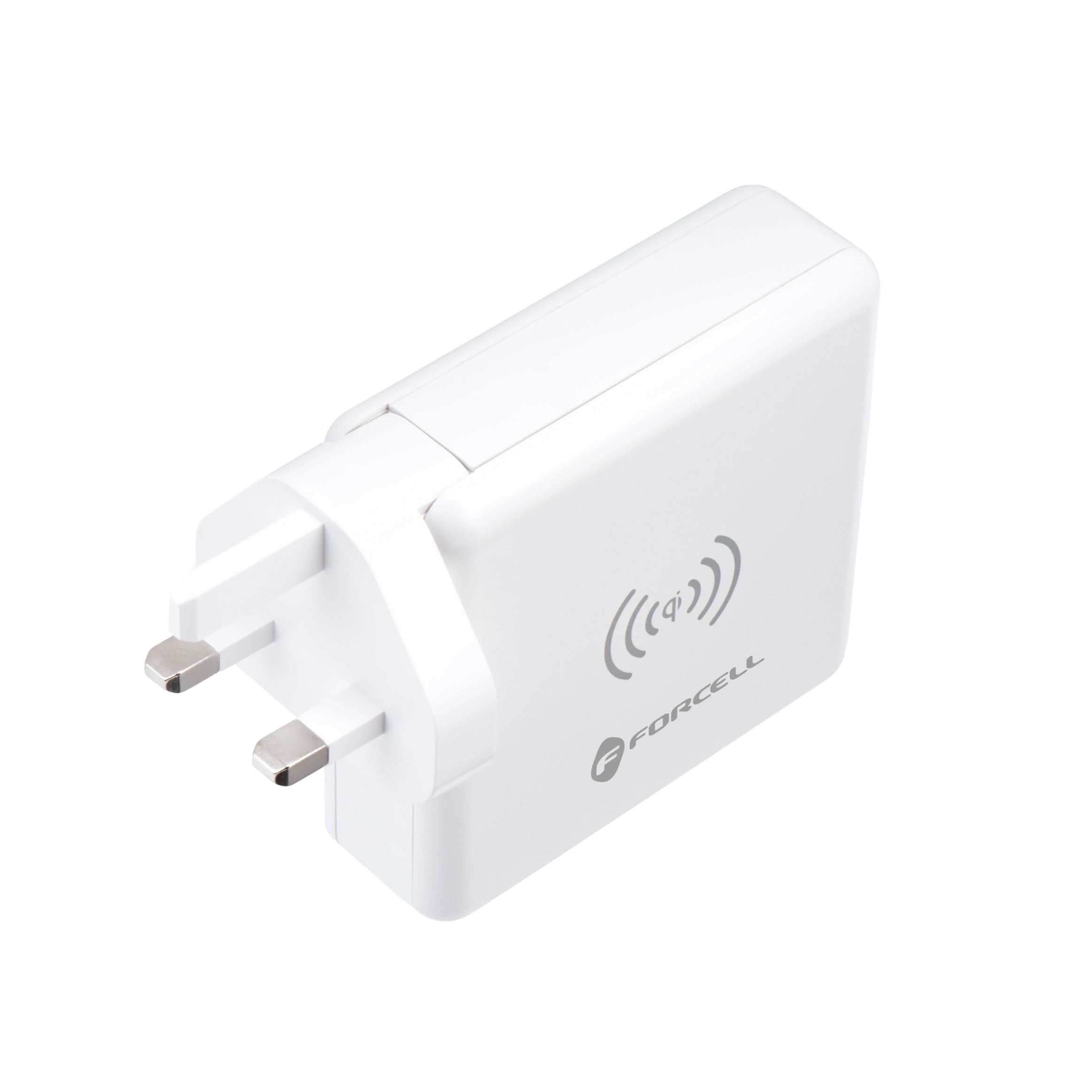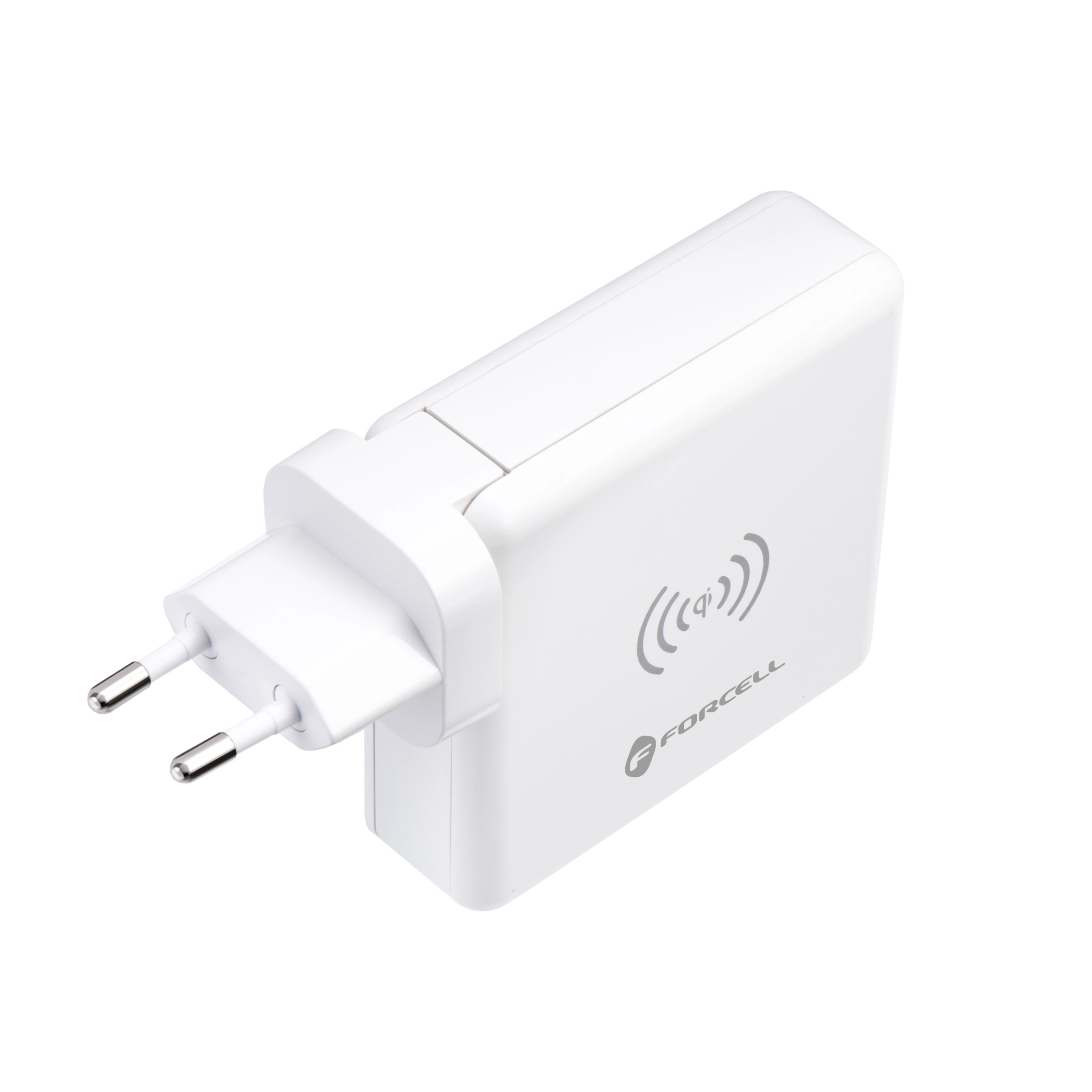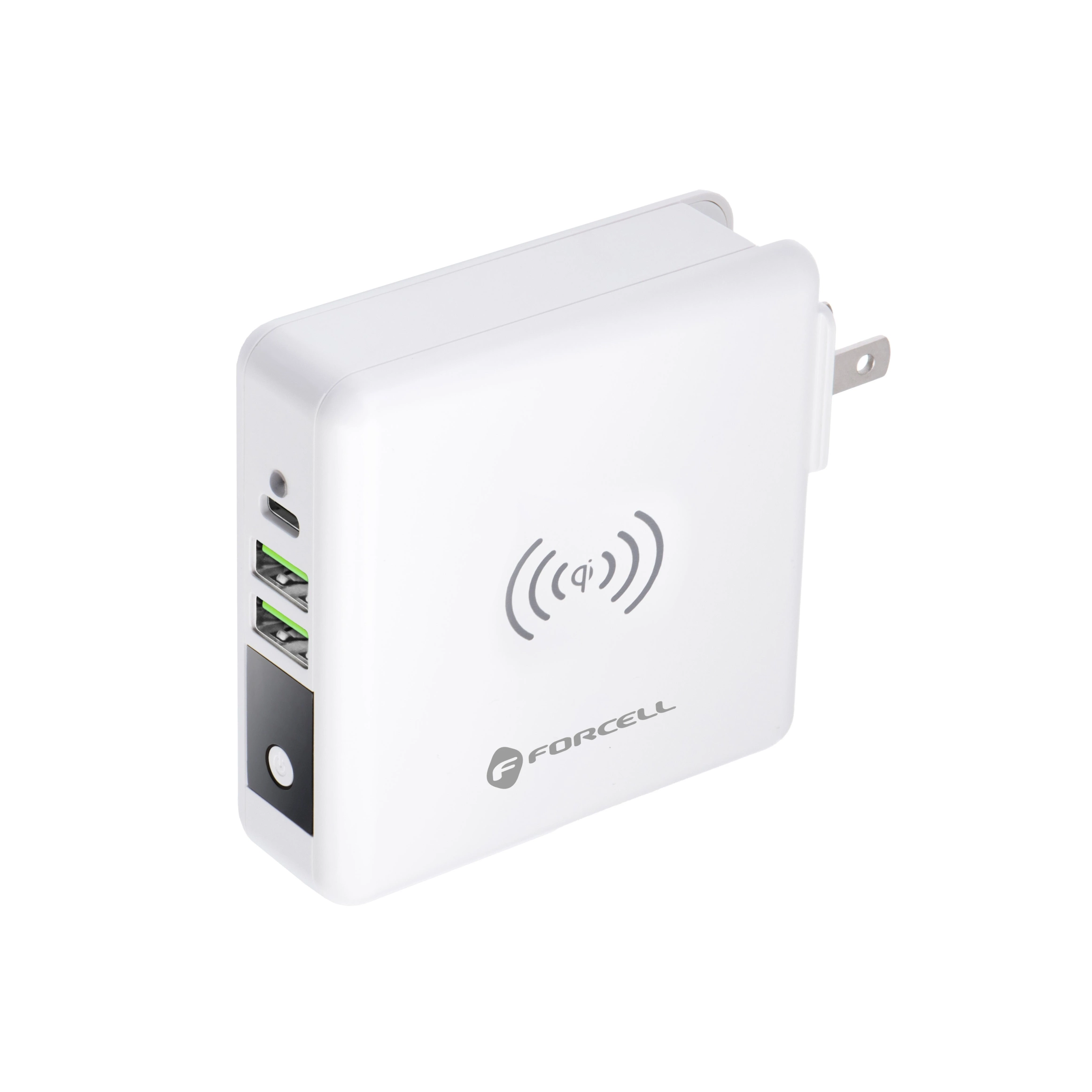 Hledáte všestrannou nabíječku, která bude fungovat v jakékoli zeměpisné šířce? Forcell 4v1 je kompletní nabíječka – síťový adaptér, powerbanka s kapacitou 8000 mAh, indukční nabíječka a cestovní adaptér v jednom kompaktním zařízení.