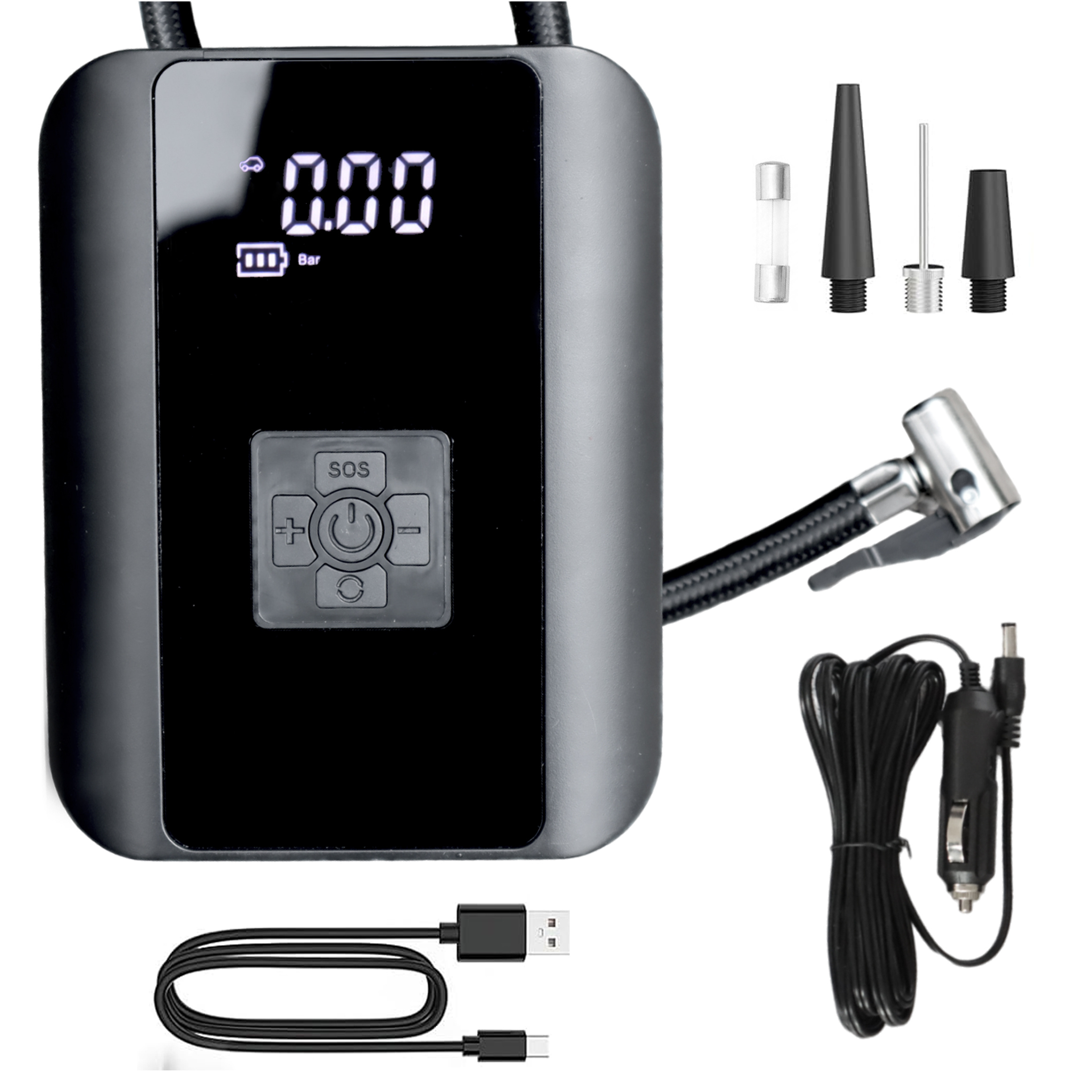 tlak v pneumatikách, baterku a nabízí i funkci SOS. Toto zařízení je ideální pro různé situace - od každodenních potřeb až po nouzové situace.
