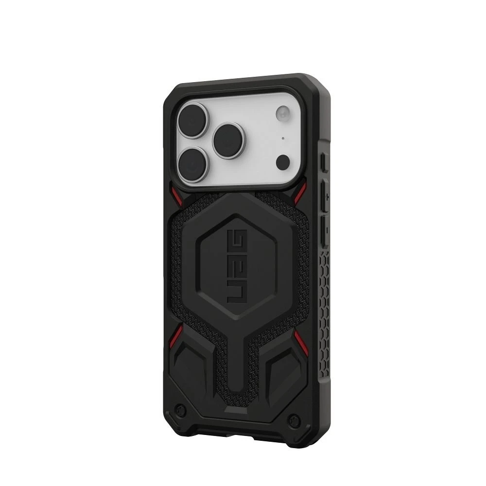 UAG Monarch Pro MagSafe Kevlar Black to elitarne etui stworzone dla najbardziej wymagających użytkowników iPhone’a 17 Pro. Łączy wojskową technologię, Kevlar balistyczny i pełną funkcjonalność MagSafe, zapewniając najwyższy poziom ochrony.