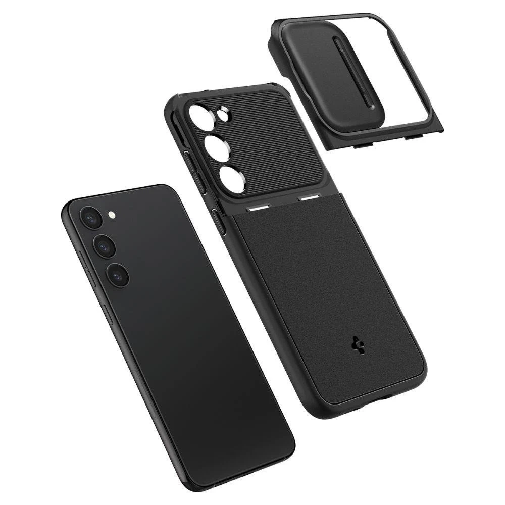• Pouzdro Spigen Optic Armor pro Samsung Galaxy S23 Black je precizně vyrobené pouzdro, které je kombinací měkké a pružné TPU překryvy a pohodlného PC slideru.