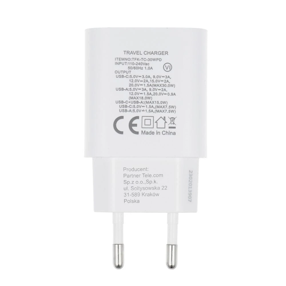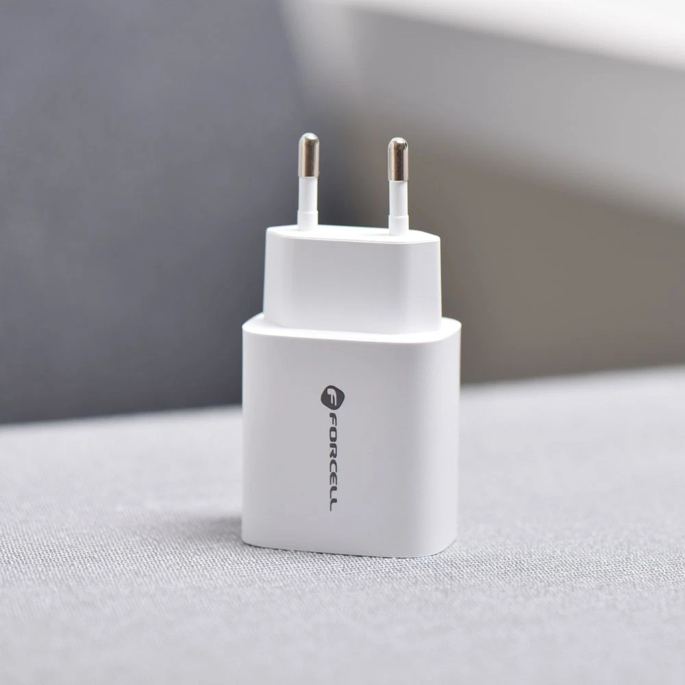 • Nástěnná nabíječka Forcell F-ENERGY 30W s porty USB-C a USB-A podporuje rychlé nabíjení Power Delivery a nabíjení Quick Charge 4.0. Bezpečné a efektivní, umožňuje nabíjet dvě zařízení současně. Barva: bílá.