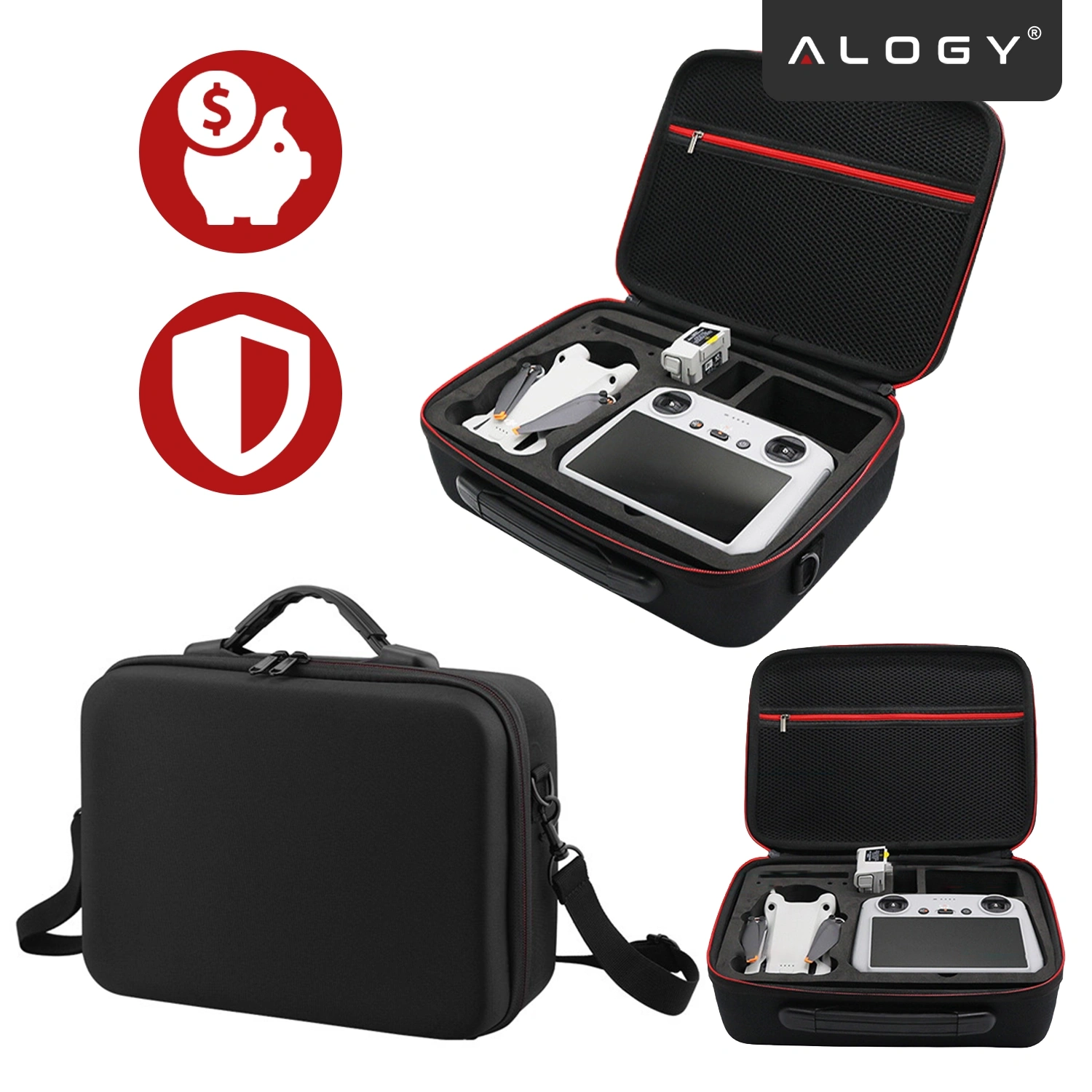 ⭐ Pevné pouzdro Rigid Hard Case od značky Alogy je extrémně pevné a praktické pouzdro určené k bezpečnému uložení a přepravě dronů řady DJI Mini 4 Pro / DJI Mini 3 Pro / Mini 3 a RC/RC-2 a RC-N1/RC-N2. ovladače .