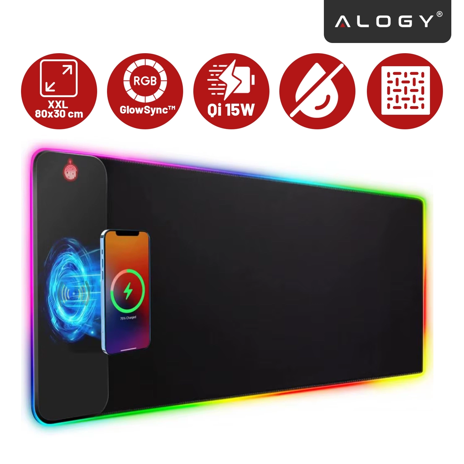 ⭐ Nejnovější model ⭐ Certifikát CE/RoHS – bezpečné použití ⭐ XXL formát 80x30 cm – ideální pro klávesnici a myš ⭐ Vestavěná 15W bezdrátová nabíječka Qi ⭐ Technologie SafeShield™ – ochrana proti přehřátí, přepětí a přetížení ⭐ RGB GlowSync™ – 10 režimů a 7 barev ⭐ TouchControl™ – dotykové ovládání ⭐ Protiskluzová guma na spodní straně ⭐ Voděodolný, snadno čistitelný povrch ⭐ 10 let zkušeností v oboru ⭐ více než 50 000 spokojených zákazníků Alogy ⭐
