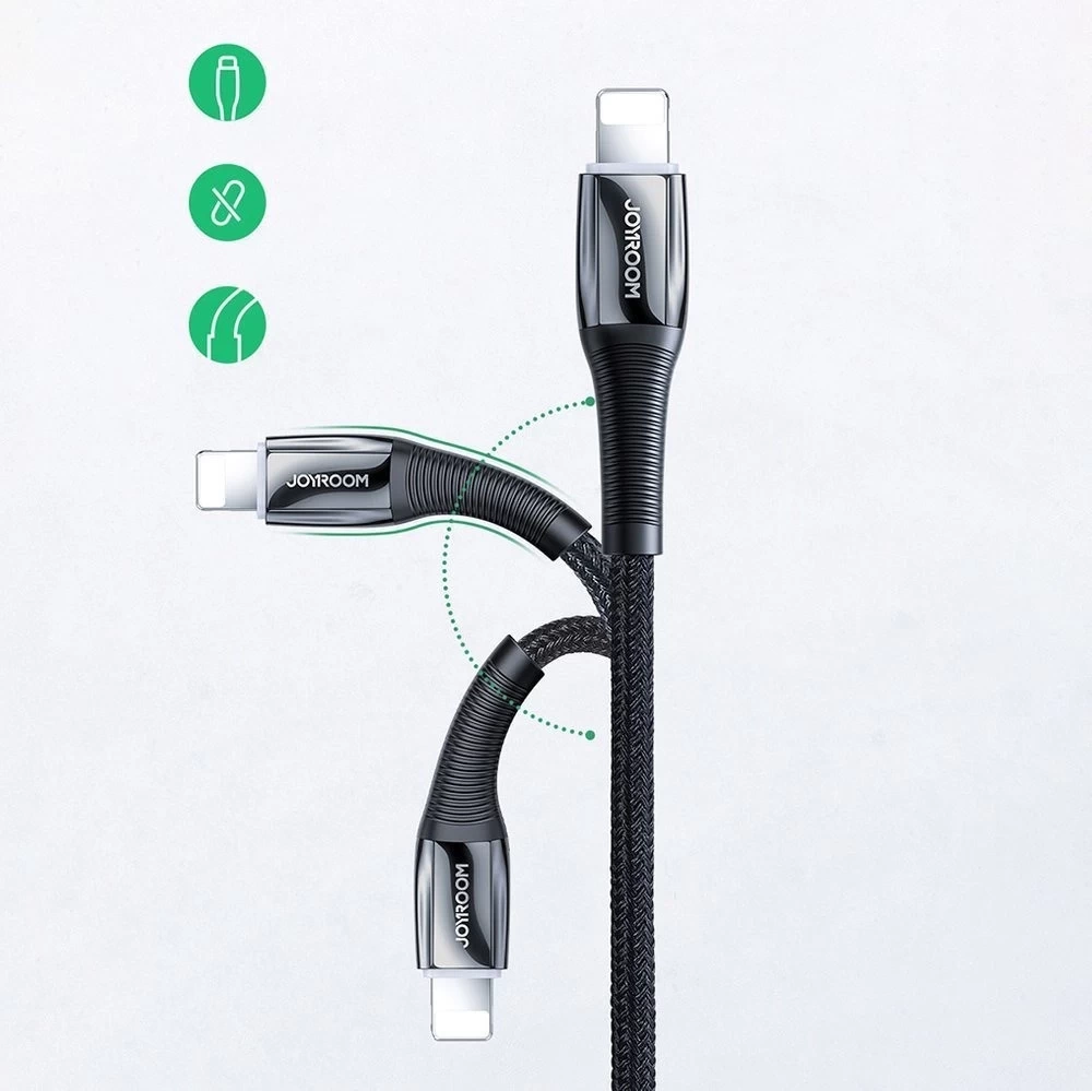 Kabel od Joyroom je zárukou rychlého nabíjení bez přetěžování nebo přehřívání zařízení. Je vyroben z ohnivzdorných materiálů, je odolný a bezpečný při používání.