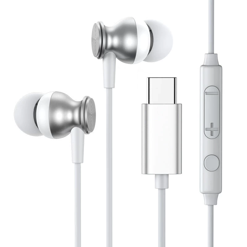 Joyroom sluchátka do uší USB typu C s dálkovým ovládáním a mikrofonem stříbrné (JR-EC04 Silver)