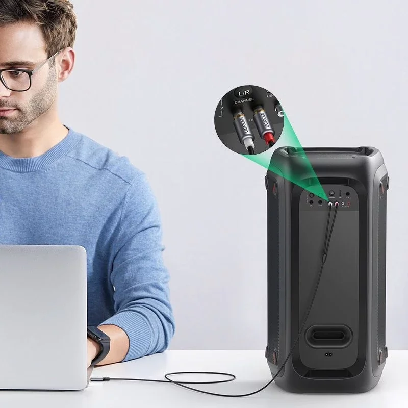 Kabel Ugreen vám umožní vychutnat si křišťálově čistý a přirozený zvuk. Výrobce vynaložil maximální úsilí, aby zajistil nezapomenutelný zážitek z poslechu jakéhokoli druhu hudby. To bylo ovlivněno mimo jiné použitím pozlacených kontaktů. Díky této vychytávce znovu objevíte své oblíbené písničky. Stačí k reproduktoru připojit telefon nebo notebook.