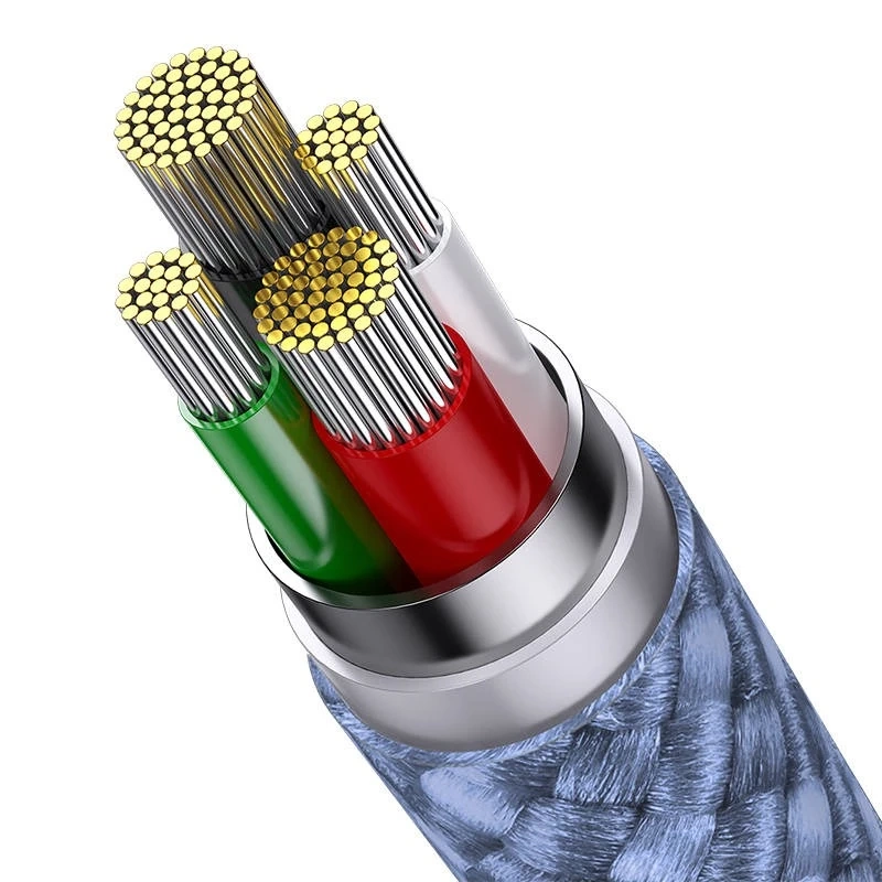 Výrobce Baseus Model CAXS000017 Barva Modrá Materiál Hliníková slitina nylon Délka 1,2 m Proud 5V / 3,5A Přenosová rychlost 480 Mb/s Konektory USB-C, micro USB, Lightning