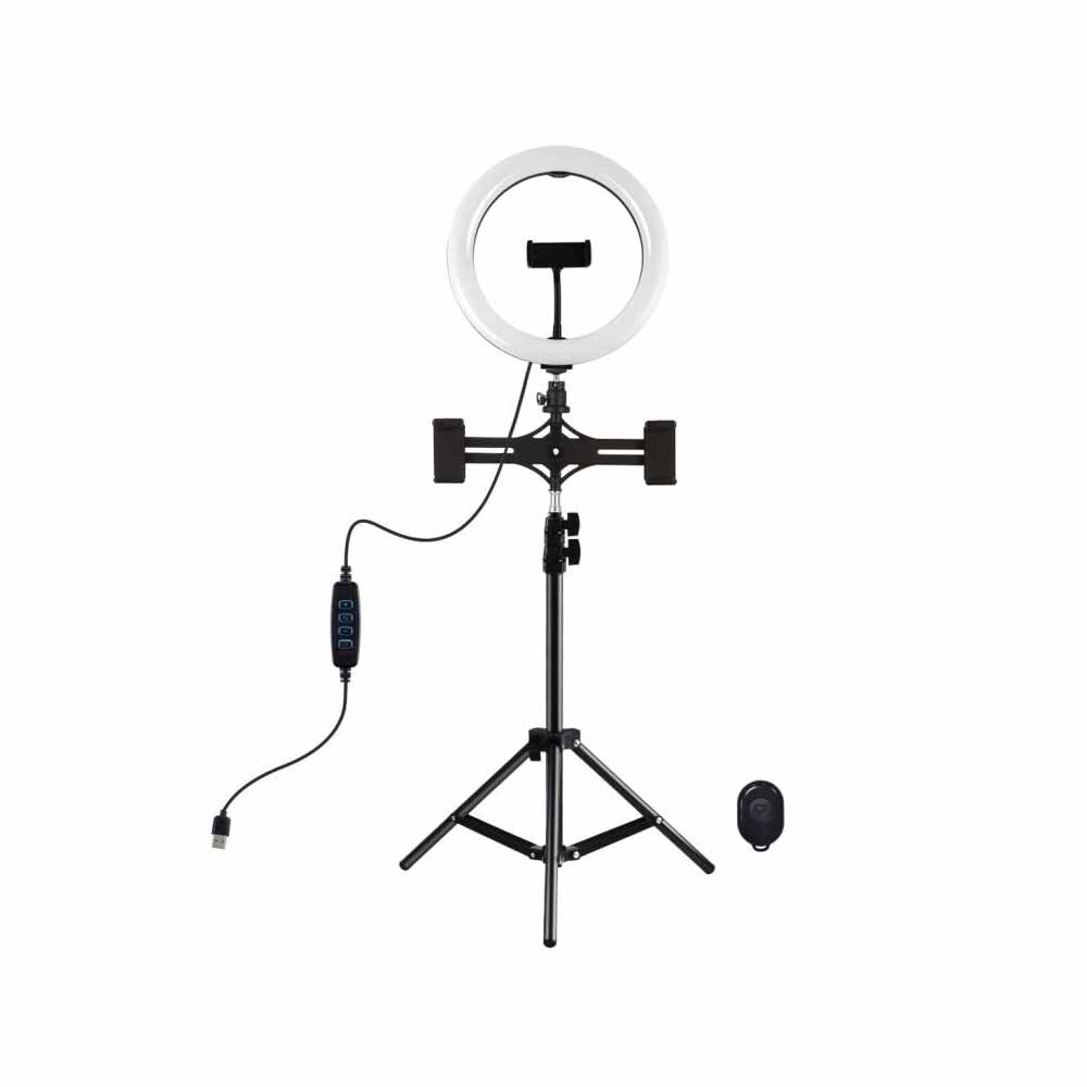 Osvětlení využijete při focení venku. Lampa také dokonale rozzáří místnost při focení, focení pro reklamní projekty nebo natáčení vlogů týkajících se módy a líčení. Díky USB portu můžete svítilnu nabíjet a připojit k notebooku, PC nebo nabíječce. Stativ je vyroben z vysoce kvalitního hliníku, díky čemuž je odolný. Nohy stativu lze snadno složit, díky čemuž je stativ kompaktní, snadno se skladuje a přenáší. Funkce nastavení výšky usnadňuje fotografování z jakéhokoli úhlu. Svěrka je kompatibilní mimo jiné s mobilním telefonem, tabletem, sportovní kamerou a DV videokamerou.