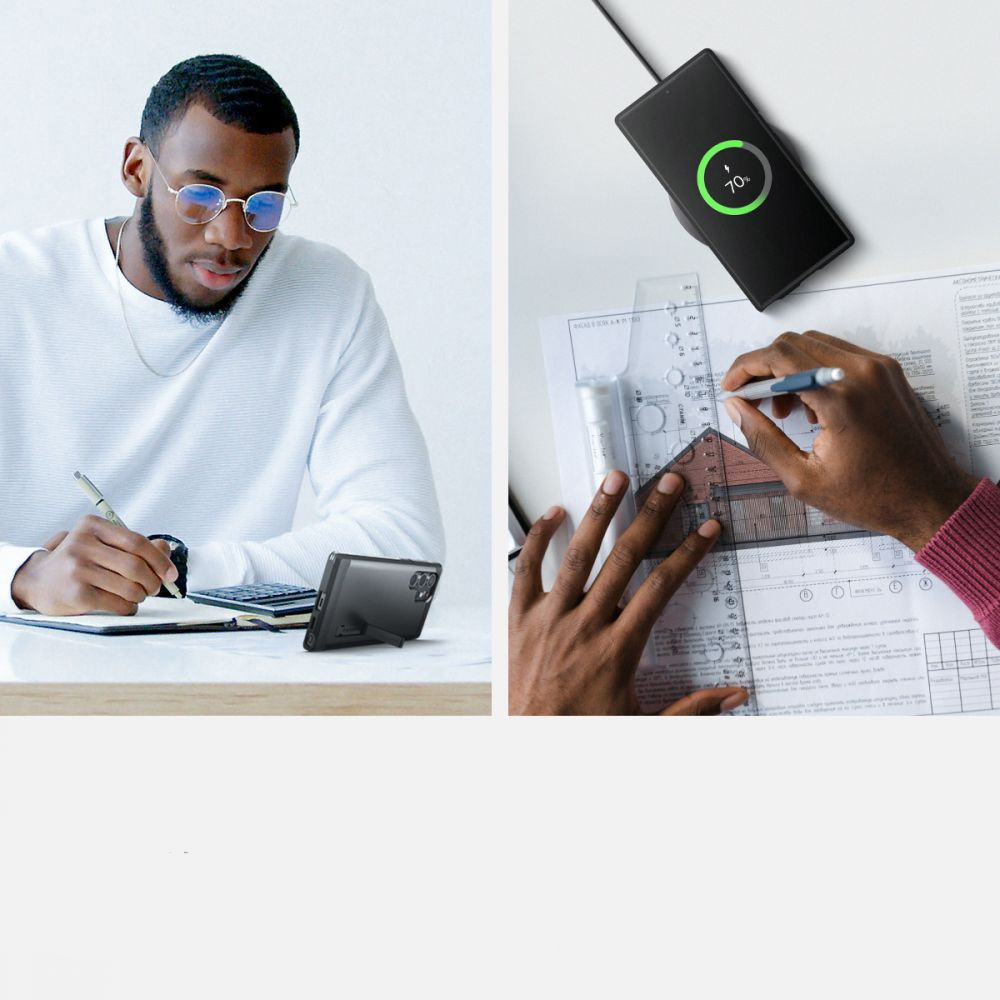 Pouzdro na telefon od renomované společnosti Spigen z řady Tough Armor je inovativní produkt, který chrání zařízení před nechtěným poškozením. Pouzdro je dokonale sladěno s telefonem Samsung Galaxy S22 Ultra , díky čemuž jsou v jeho konstrukci zahrnuty všechny potřebné výřezy pro konektory a fotoaparát, díky čemuž je zařízení plně funkční při každodenním používání.