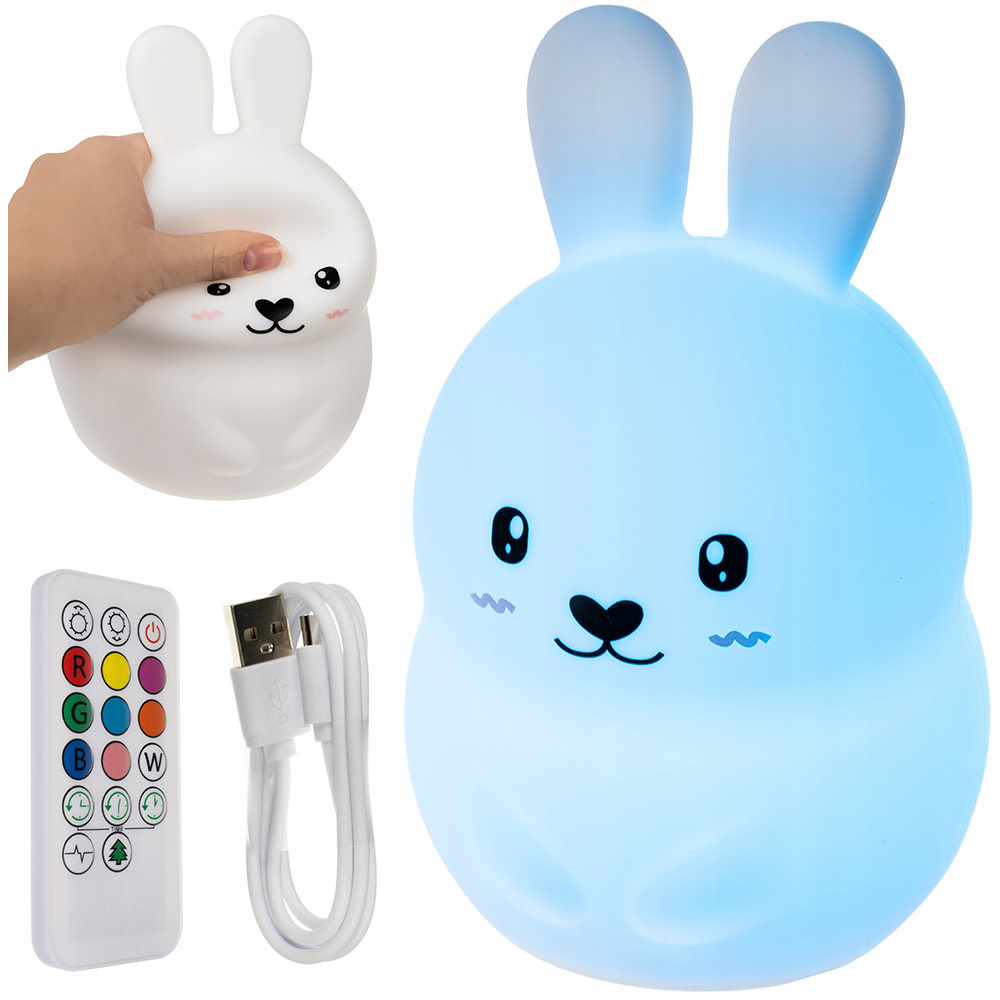 • Silikonová LED noční lampa pro děti 9 barev Lampa Bunny s dálkovým ovládáním je vysoce kvalitní výrobek, který se bude skvěle hodit do dětského pokoje. Lampa svítí jemným světlem a třpytí se pestrými barvami, které si zamiluje každé dítě.