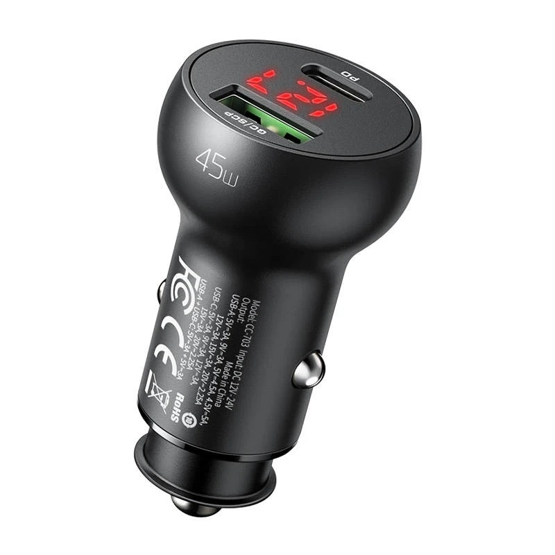 Nabíječka do auta Mcdodo CC-7030, USB USB-C, s displejem, 45 W (černá)