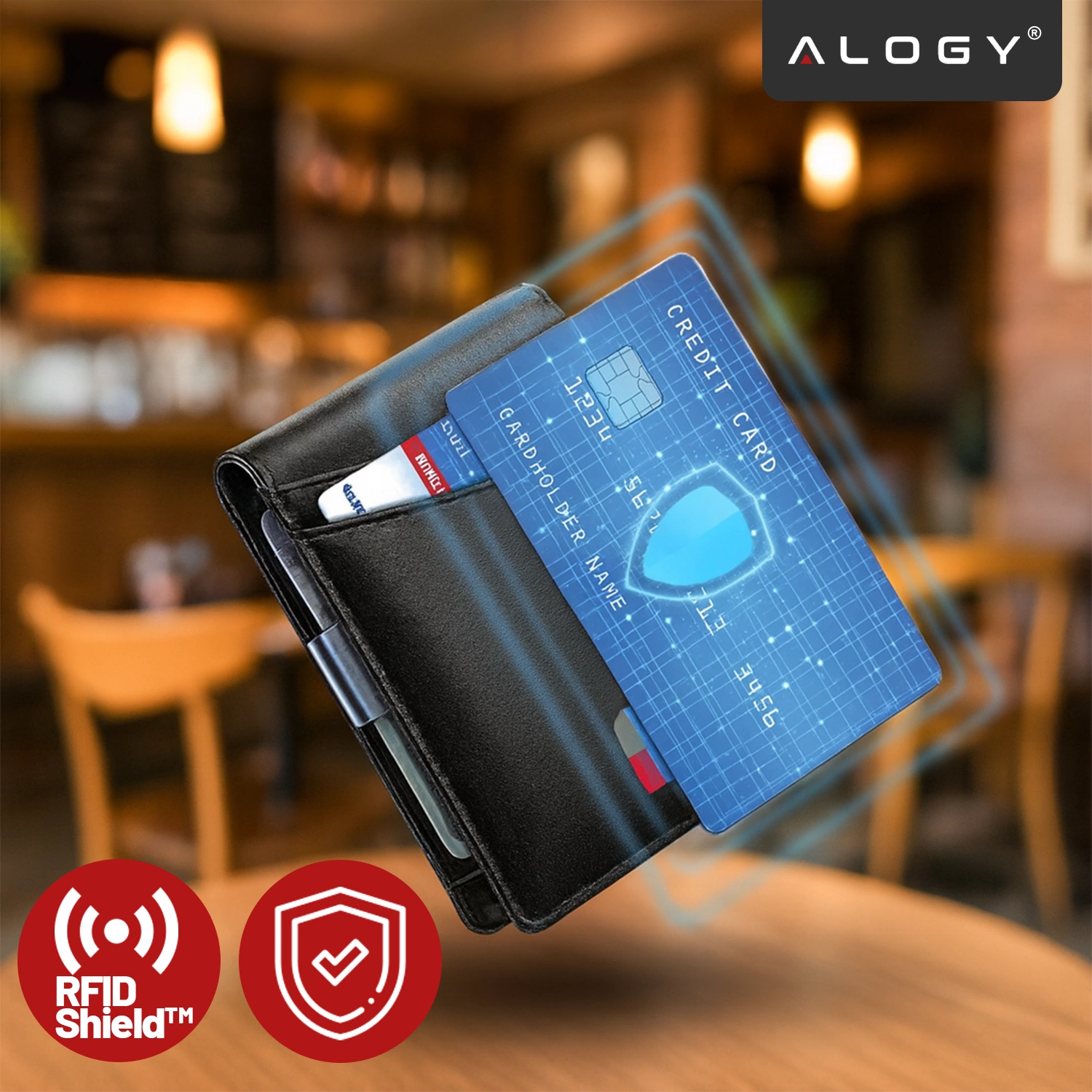 Tenká peněženka Alogy RFID je ideální pro různé situace díky svému štíhlému designu, elegantnímu vzhledu a funkčním funkcím, jako je QuickAccess Slot™ a RFIDShield™.