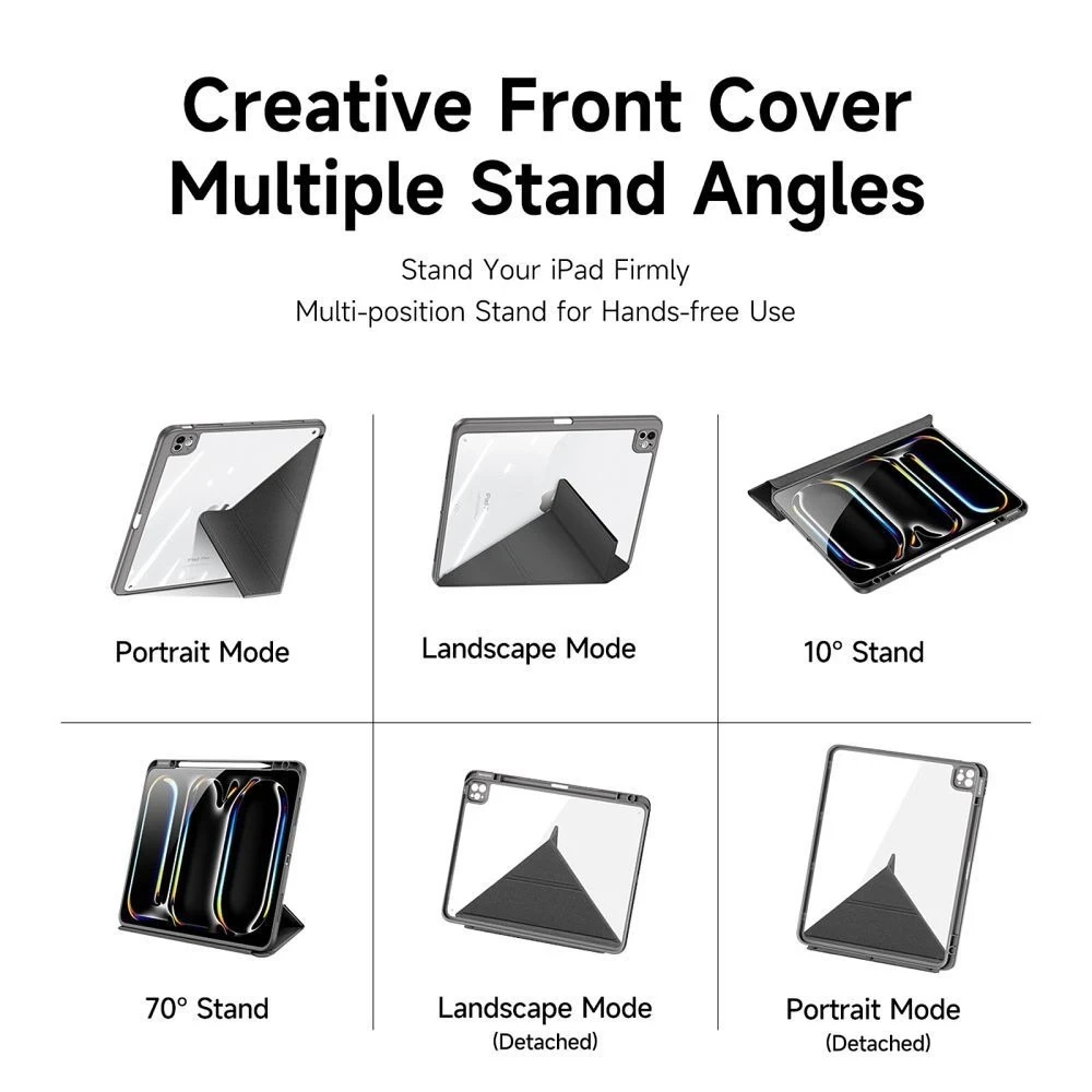 Průhledná zadní část pouzdra umožňuje zachovat původní vzhled iPadu, aniž byste se vzdali ochrany. Pouzdro Dux Ducis Magi je kombinací moderního stylu a praktických řešení - ideální pro práci, studium i každodenní použití.