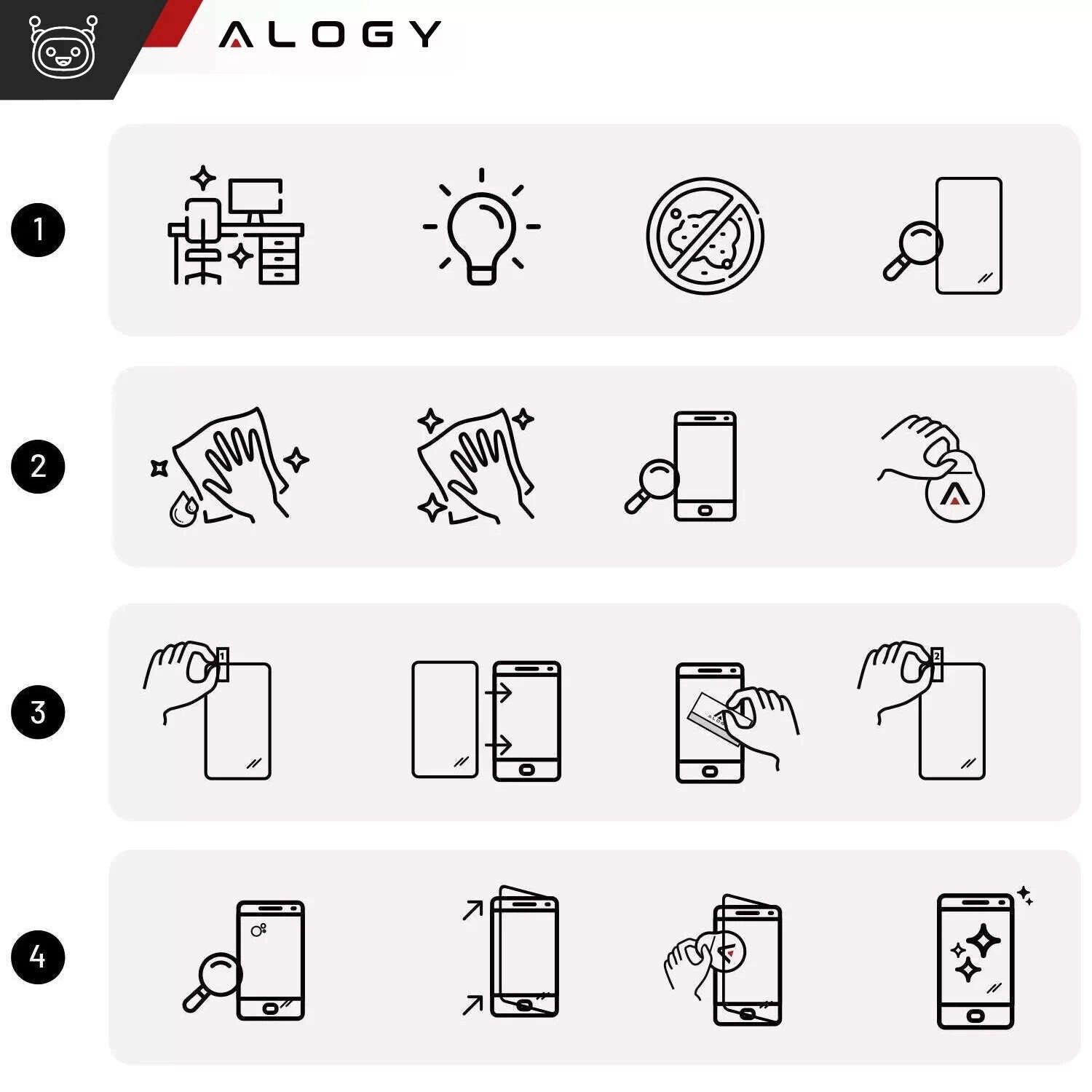 - Příprava: Správná příprava je nezbytná – zajistěte čisté prostředí, dostatečné osvětlení a bezprašnost. Před instalací zkontrolujte sklo, zda je plně kompatibilní s vaším zařízením.