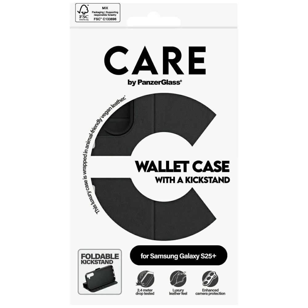 Pouzdro CARE by PanzerGlass s stojánkem je kombinací elegance, funkčnosti a udržitelného přístupu k ochraně vašeho smartphonu. Pouzdro, navržené speciálně pro Samsung Galaxy S25 Plus , je vyrobeno z vysoce kvalitní veganské kůže , díky čemuž vypadá luxusně a zároveň je šetrné ke zvířatům a životnímu prostředí.