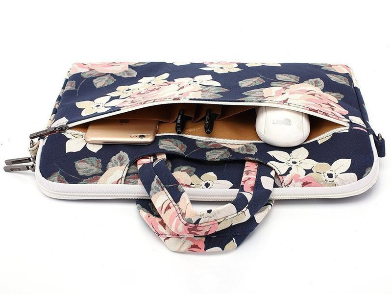 Univerzální pouzdro určené pro všechna 13'' nebo menší zařízení, zejména pro MacBook Pro 13 a MacBook Air 13 , je prvotřídní pouzdro vyrobené z plátěného materiálu, který je příjemný na dotek a je voděodolný. Je potištěná módním květinovým motivem, který potěší každého. Jedná se o tašku s přihrádkami, ve kterých můžeme naše zařízení snadno uložit a přenášet, ať už cestujeme kamkoli. Uvnitř byla brašna vystlána měkkým, hustým materiálem, který je navržen tak, aby zabránil poškození našeho zařízení a poskytl mu ještě větší zabezpečení proti nechtěným škrábancům a oděrkám.