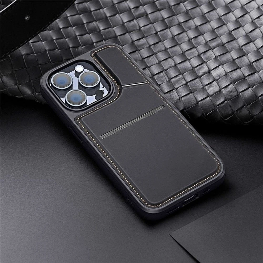 Pouzdro Dux Ducis Rafi II Mag je pokročilé řešení pro chytré telefony, kompatibilní s MagSafe. Má dvě kapsy na karty, zámek RAFID a nastavitelný stojánek.