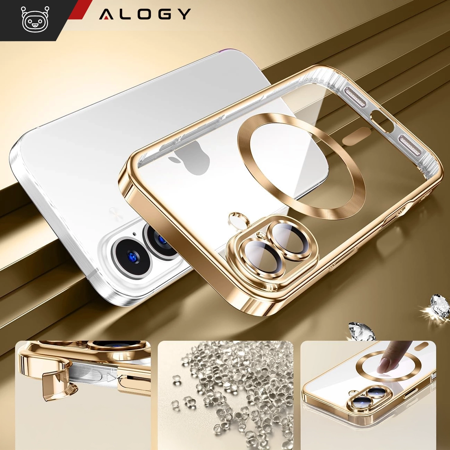 ✅ Luxusní pouzdro Alogy MagSafe Glamour určené pro Apple iPhone 16 nabízí prémiovou ochranu a perfektní padnutí díky flexibilnímu polyuretanovému rámu. Zlatá povrchová úprava dodává eleganci , účinně chrání fotoaparát a objektivy a tenký design telefon nezvětšuje.