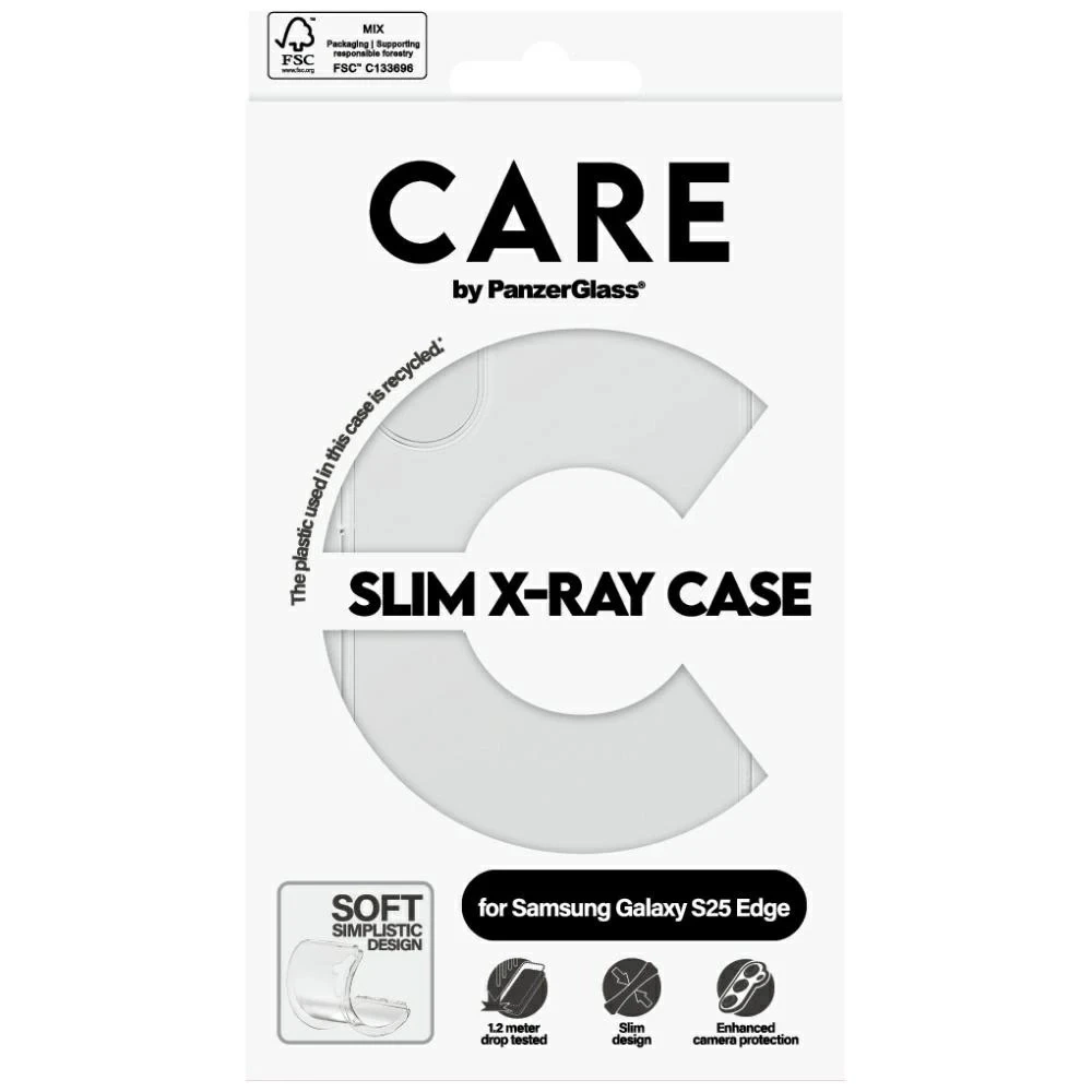 Pouzdro CARE Fashion X-Ray od PanzerGlass pro Samsung Galaxy S25 Edge je kombinací minimalistického designu, odolnosti a ekologického povědomí . Pouzdro je vyrobeno výhradně z recyklovaného TPU a je ideální pro lidi, kteří si cení ochrany svého smartphonu a životního prostředí.