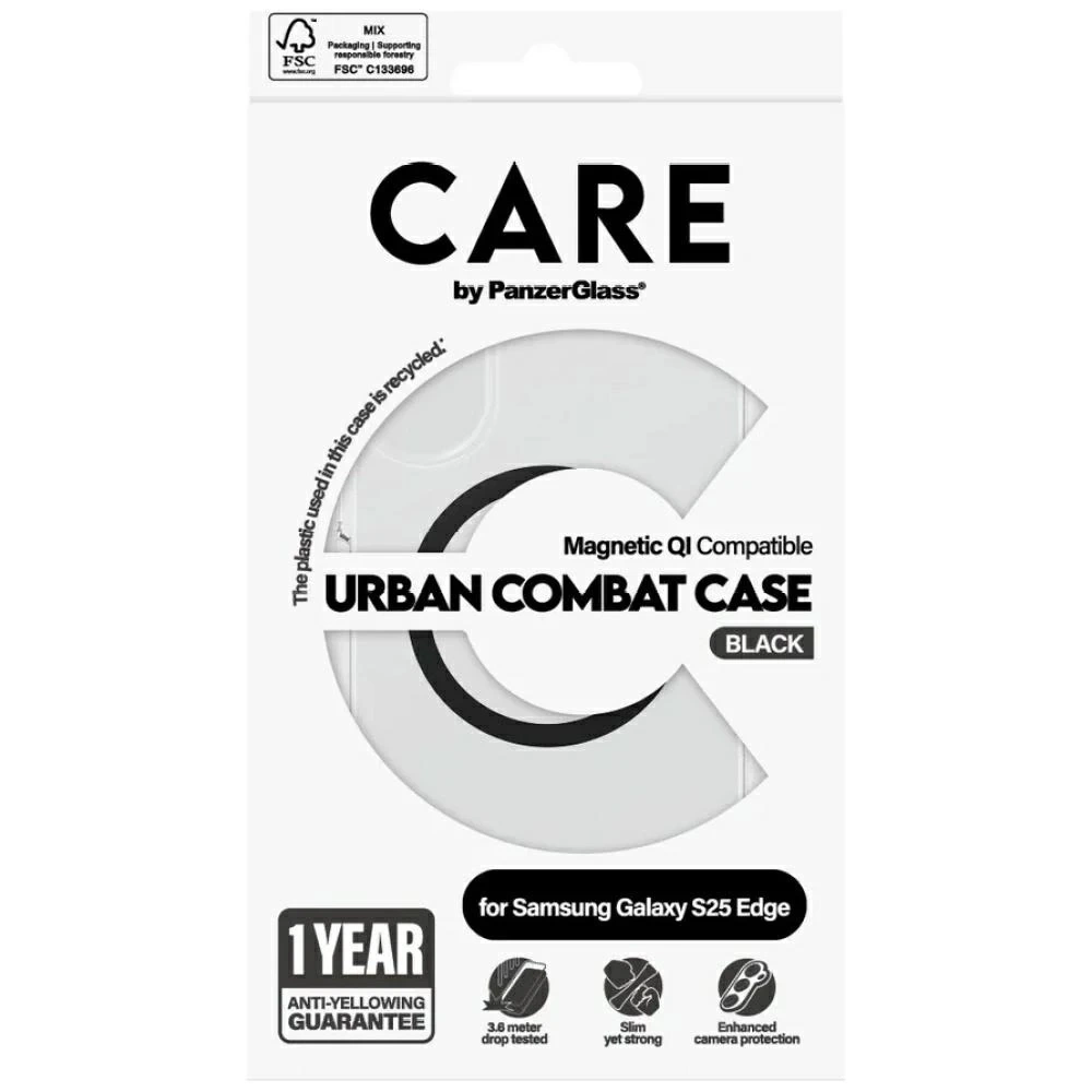 Pouzdro CARE by PanzerGlass Urban Combat Black QI pro Samsung Galaxy S25 Edge je určeno pro ty, kteří žijí intenzivně a nedělají kompromisy. Je navrženo pro maximální odolnost a každodenní pohodlí a poskytuje prvotřídní ochranu v každé situaci.