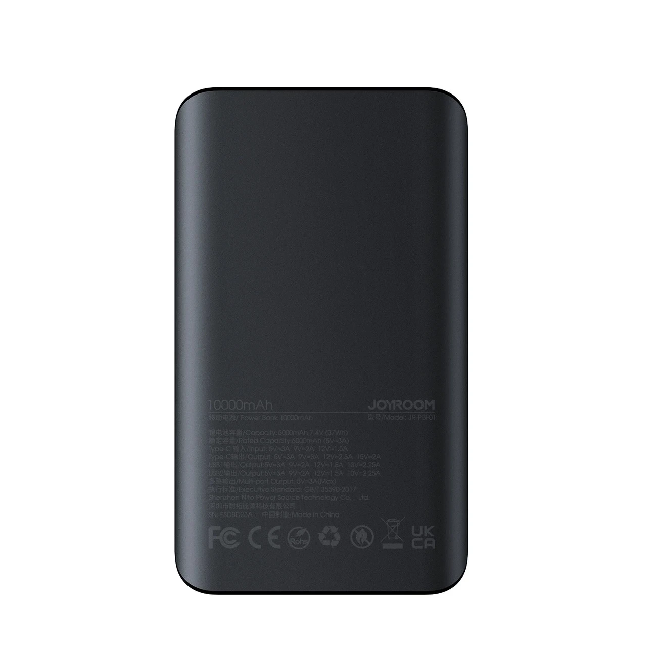 Joyroom JR-PBF01 je lehká a praktická powerbanka s kapacitou 10 000 mAh, která se snadno vejde do kapsy nebo tašky. S maximálním výkonem 30 W z portu USB-C s technologií Power Delivery můžete nabít svůj chytrý telefon, tablet nebo dokonce ultrabook za zlomek času.