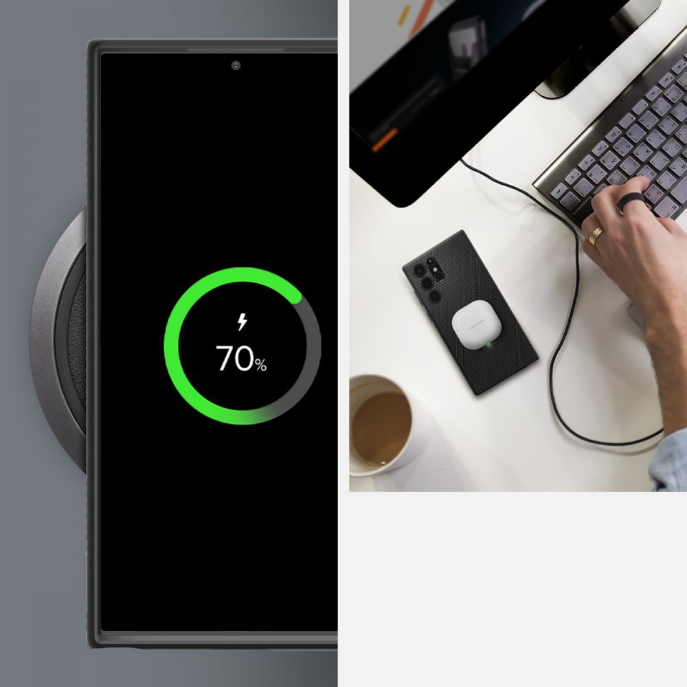 Pouzdro na telefon Spigen Liquid Air je produkt navržený speciálně pro Samsung Galaxy S22 Ultra. Byl vyroben z vysoce kvalitního pružného polyuretanu (TPU), který se díky svým vlastnostem přizpůsobí zařízení, minimalizuje možnost jeho sklouznutí a výrazně nezvětší jeho velikost. Pouzdro Liquid Air chrání váš telefon před poškozením pádem z průměrné výšky tím, že absorbuje sílu nárazu.