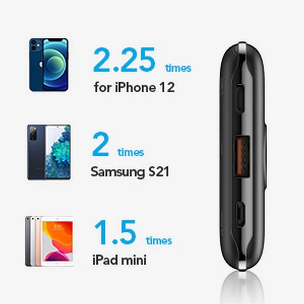 3 porty, včetně micro USB, USB-C a USB-A, podporují technologie rychlého nabíjení Power Delivery (22,5 W) a Quick Charge 3.0 a umožní vám nabíjet dvě zařízení současně, například smartphone, tablet, handheld konzole nebo sluchátka TWS. Díky USB-C můžete snadno připojit nejnovější zařízení na trhu.