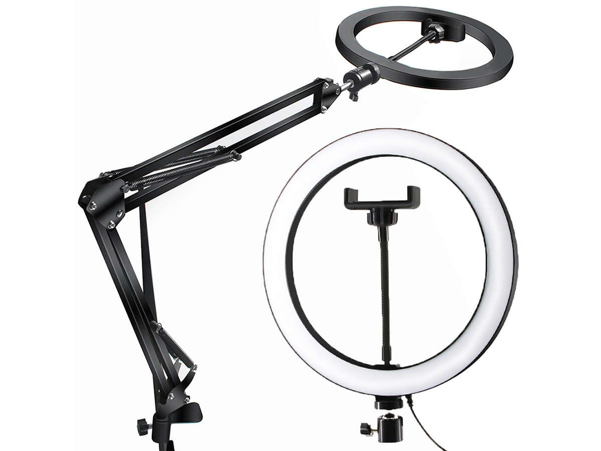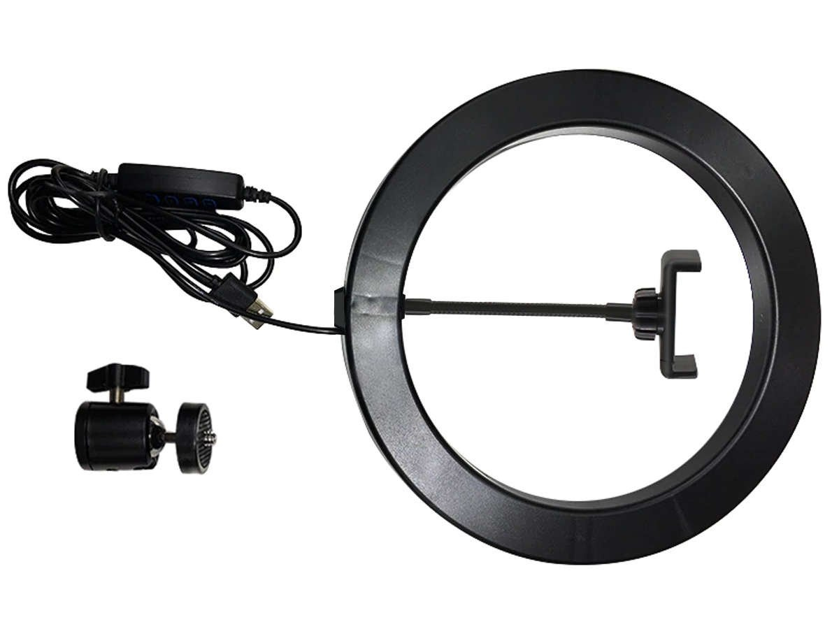 Kruhová 10" LED lampa je ideální vychytávka pro kosmetické salony, kadeřnictví nebo pro domácí použití při natáčení / focení obličejů. Součástí sady je i stativ, který lze upevnit na stůl nebo desku stolu o maximální šířce 5,5 cm. Je zabudována do konstrukce.dvoudílná a umožňuje ještě lepší kontrolu polohy svítilny.