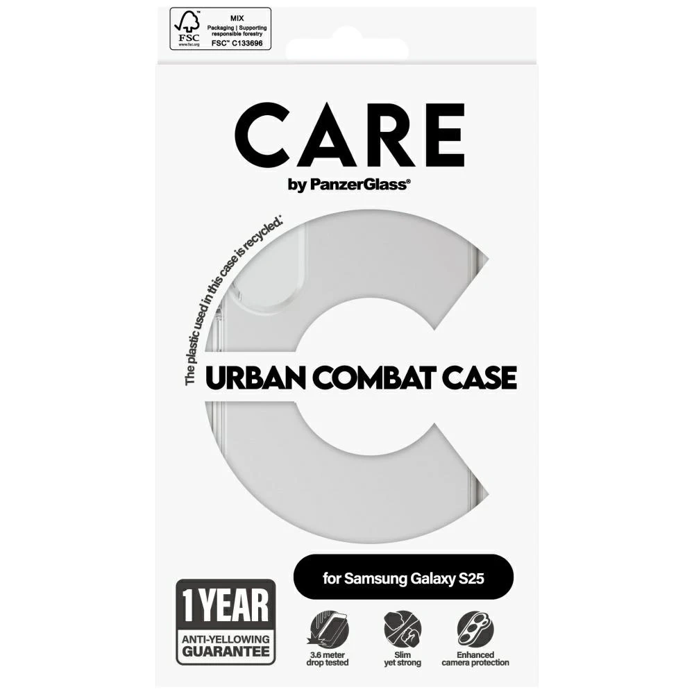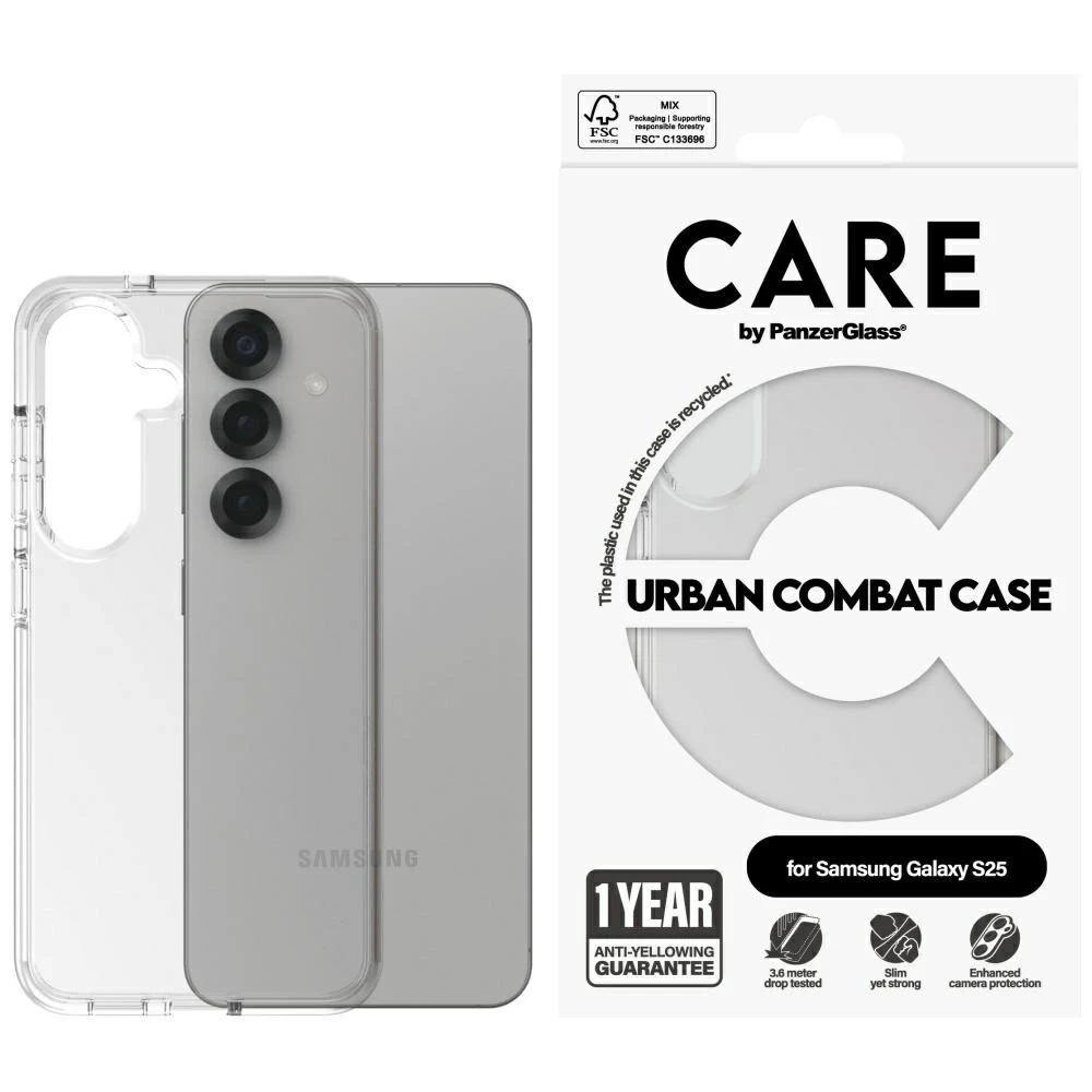 Průhledný kryt CARE od PanzerGlass Flagship pro Samsung Galaxy S25 je kombinací pancéřované ochrany, moderního stylu a ekologického přístupu k designu. Je vyroben ze 100% recyklovaného TPU a PC, takže je vědomou volbou pro uživatele, kterým záleží na životním prostředí.