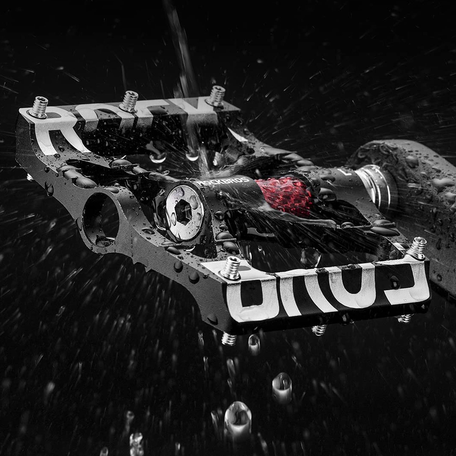 Pedály na kolo značky RockBros jsou vyrobeny z vysoce kvalitní hliníkové slitiny , díky čemuž jsou extrémně odolné a odolné vůči korozi . Použité utěsněné ložisko zlepšuje chod mechanismu, který se snadno a bez vůle otáčí.