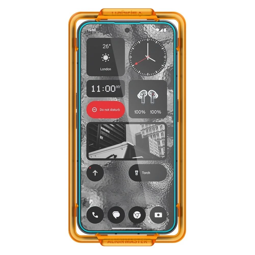 • Spigen Alm Glas.tR 2-balení tvrzeného skla pro Nothing Phone 2 je chráněno montážním rámečkem dokonale vyříznutým do přední části telefonu, díky kterému jej můžete perfektně umístit na obrazovku.