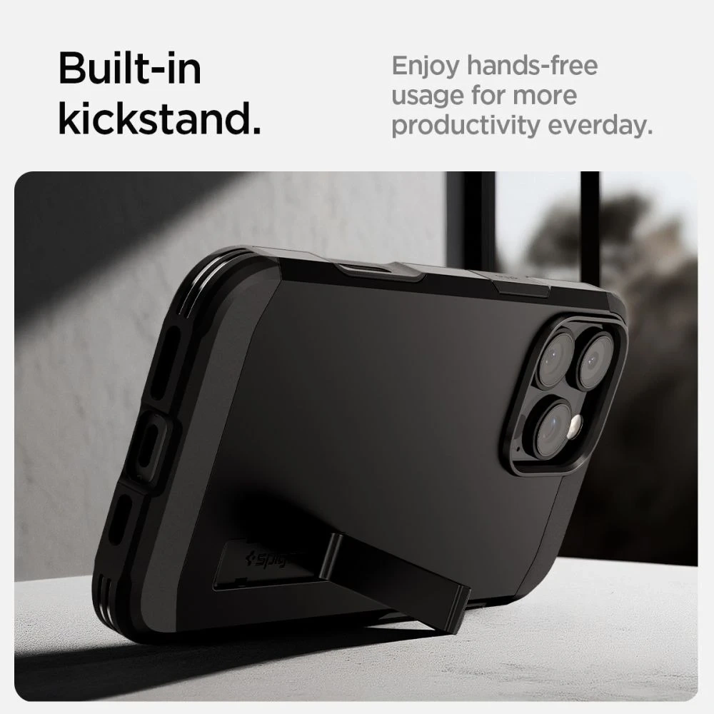 • Pouzdro Spigen Tough Armor "T" Mag poskytuje pevnou ochranu s dvoudílnou TPU a polykarbonátovou konstrukcí a pěnovou vložkou tlumící nárazy. Vyhovuje MagSafe, odolává pádovým testům a splňuje vojenskou normu MIL-STD 810G-516.6.