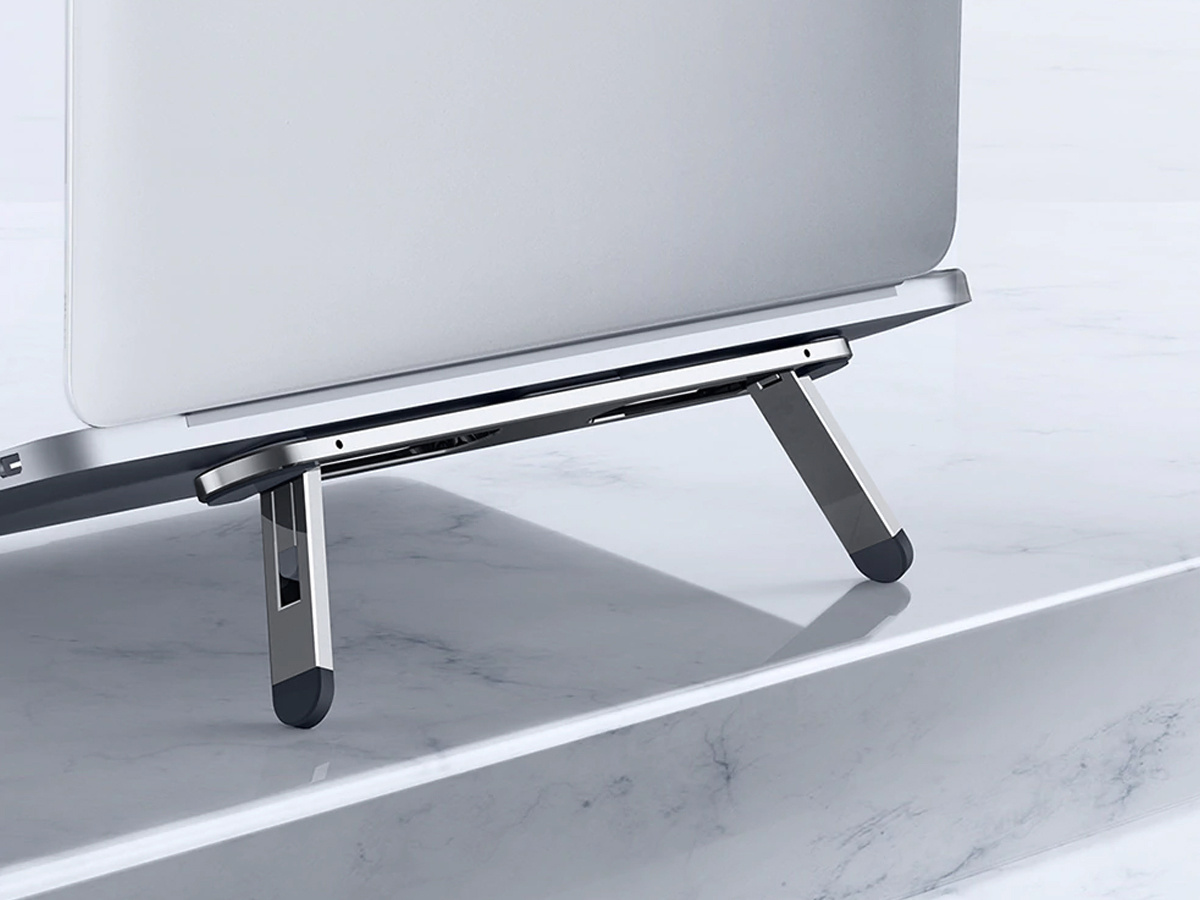 Vyrobeno z vysoce kvalitního tvrdého hliníku, drží počítač stabilně. Díky přiloženým silikonovým krytům notebook neklouže.