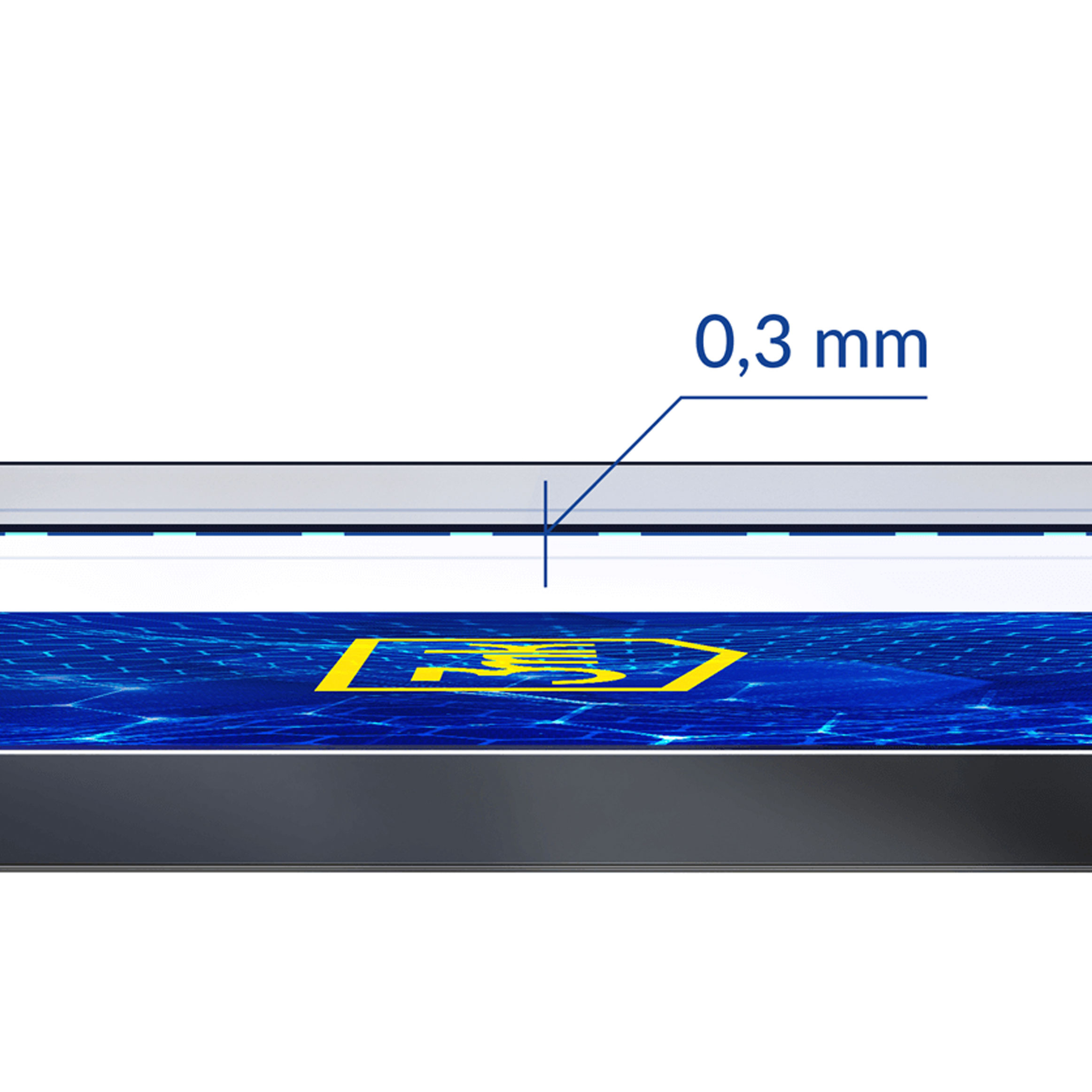 Sklo je pouze 0,3 mm silné, takže je špatně vidět a cítit pod prstem ,< /span> vytváří dojem, že váš prst klouže po hladkém skle.