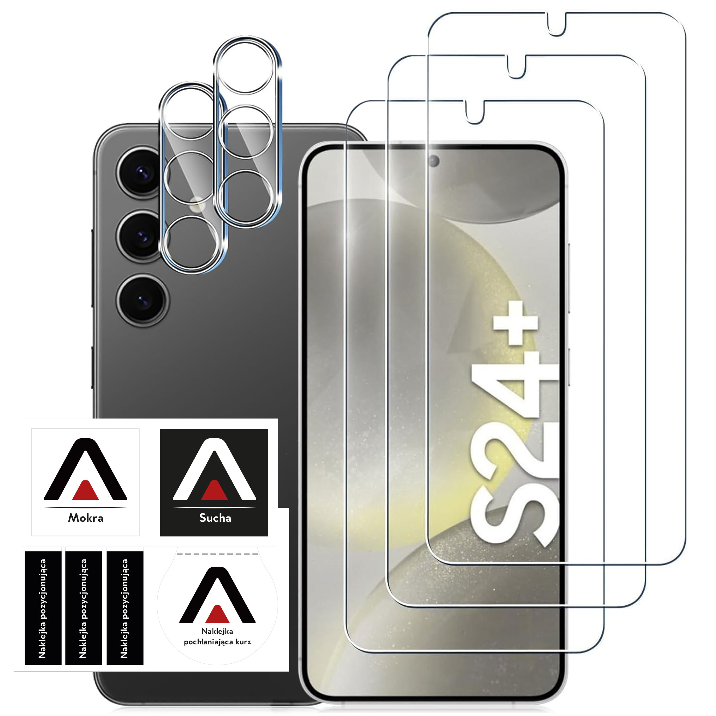 Tvrzené sklo pro Samsung Galaxy S24 Plus 3x Ochranné sklo 2x Objektiv objektivu fotoaparátu Pro 9H Alogy Glass Set